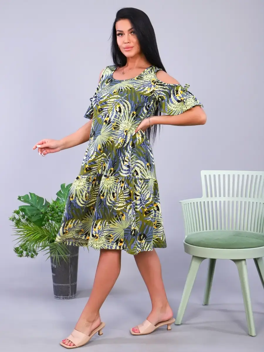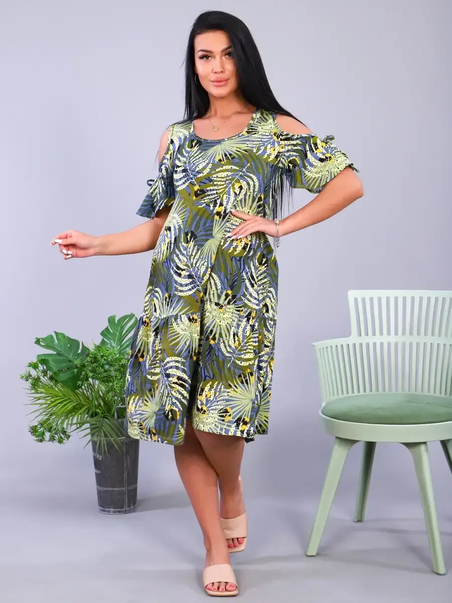 Платье из трикотажа, натуральных волокон, 100% хлопок. Подходит для дома, отдыха, прогулок. Скроет все недостатки фигуры. Яркие краски поднимут Вам настроение. Платье имеет широкий размерный ряд и большие размеры. Отличный подарок для Ваших близких.