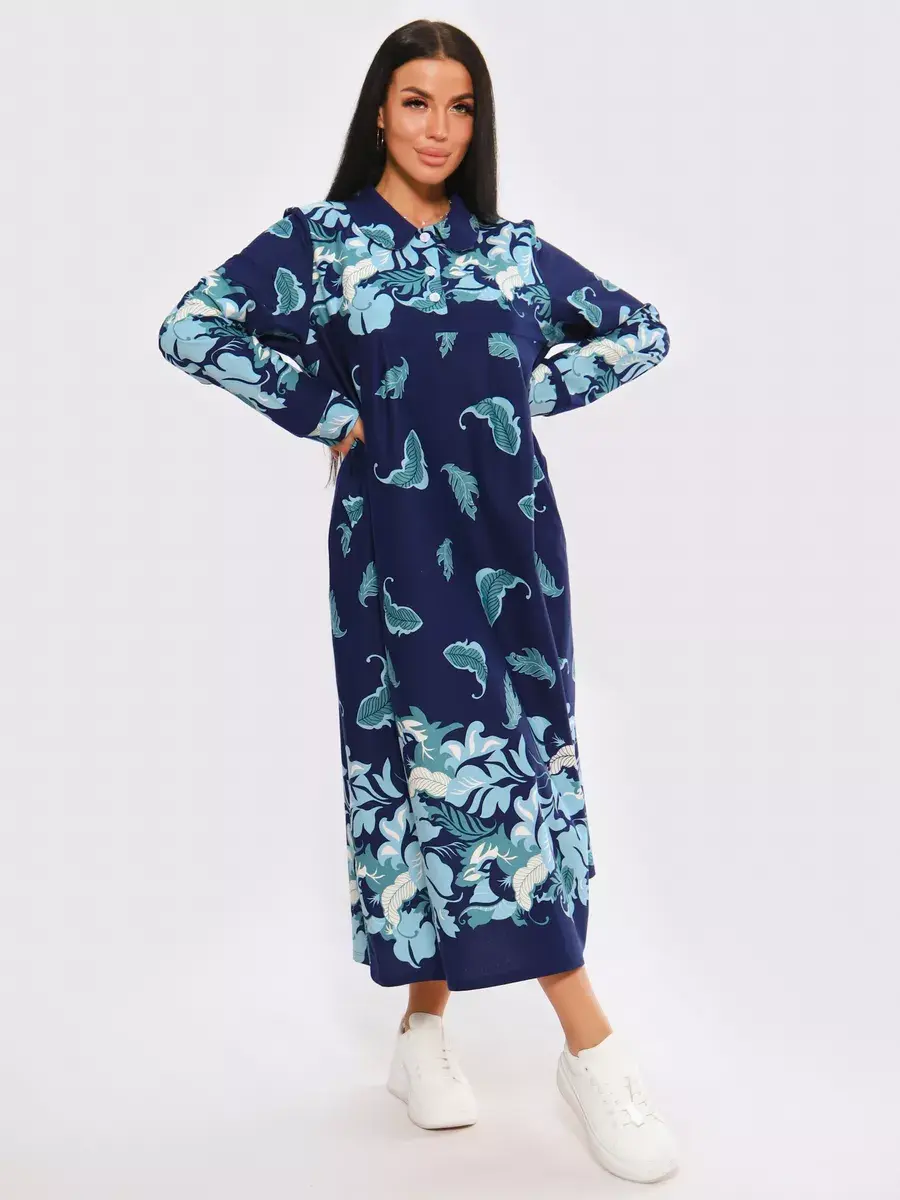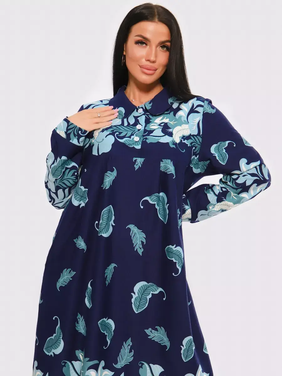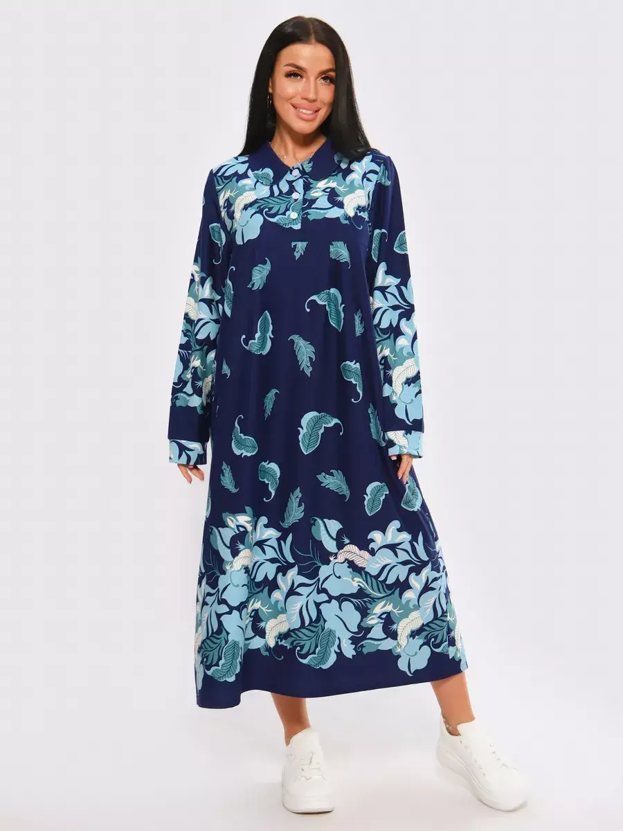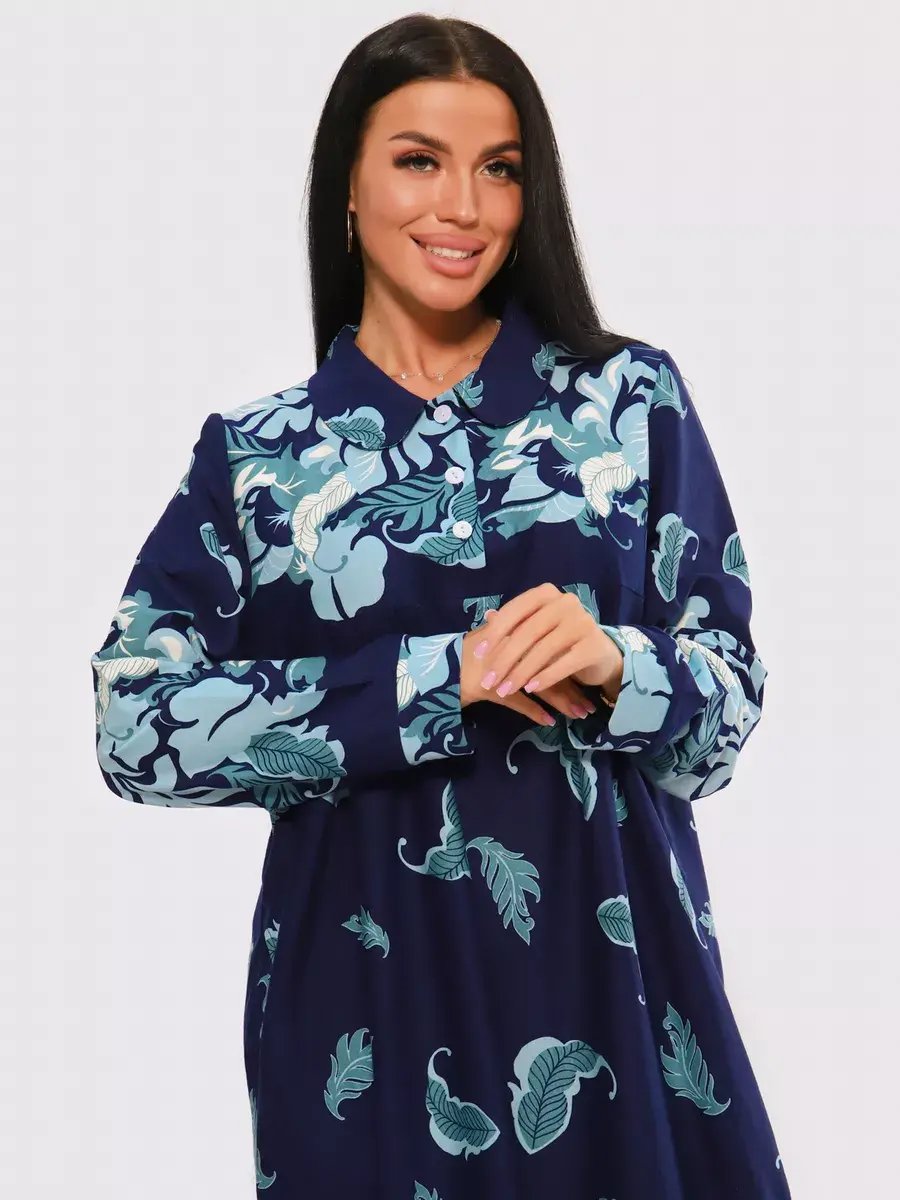 Платье женское из натуральных материалов. Платье закрытое с длинным рукавом и отложным воротником, кокетка застегивается на пуговицы. Платье свободного покроя, расширенный размерный ряд, подойдет для девушек и женщин в положение, для повседневной носки и прогулок.