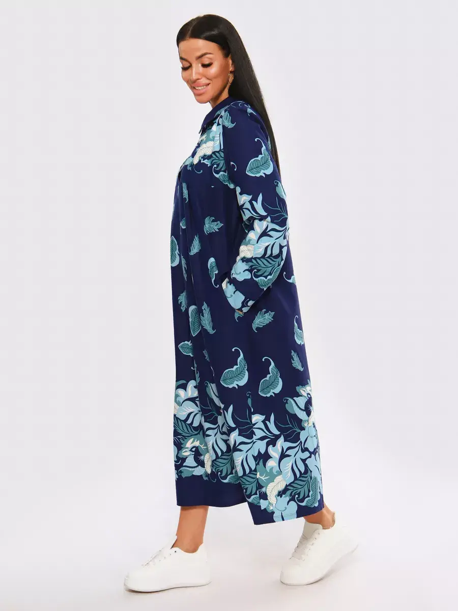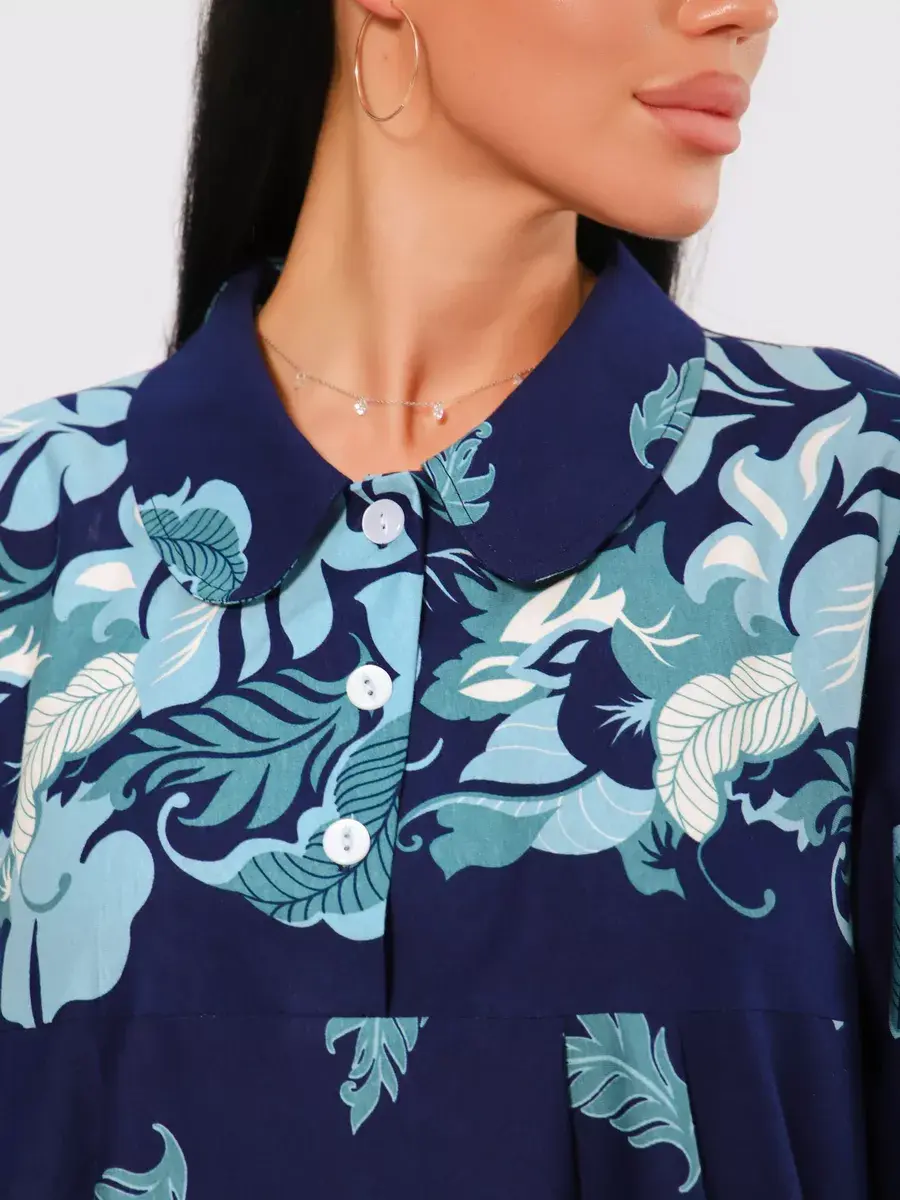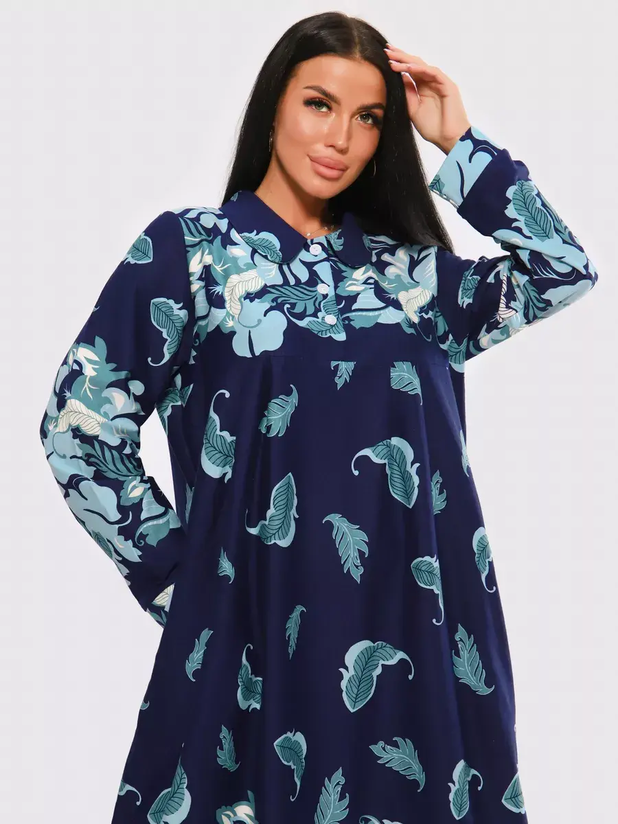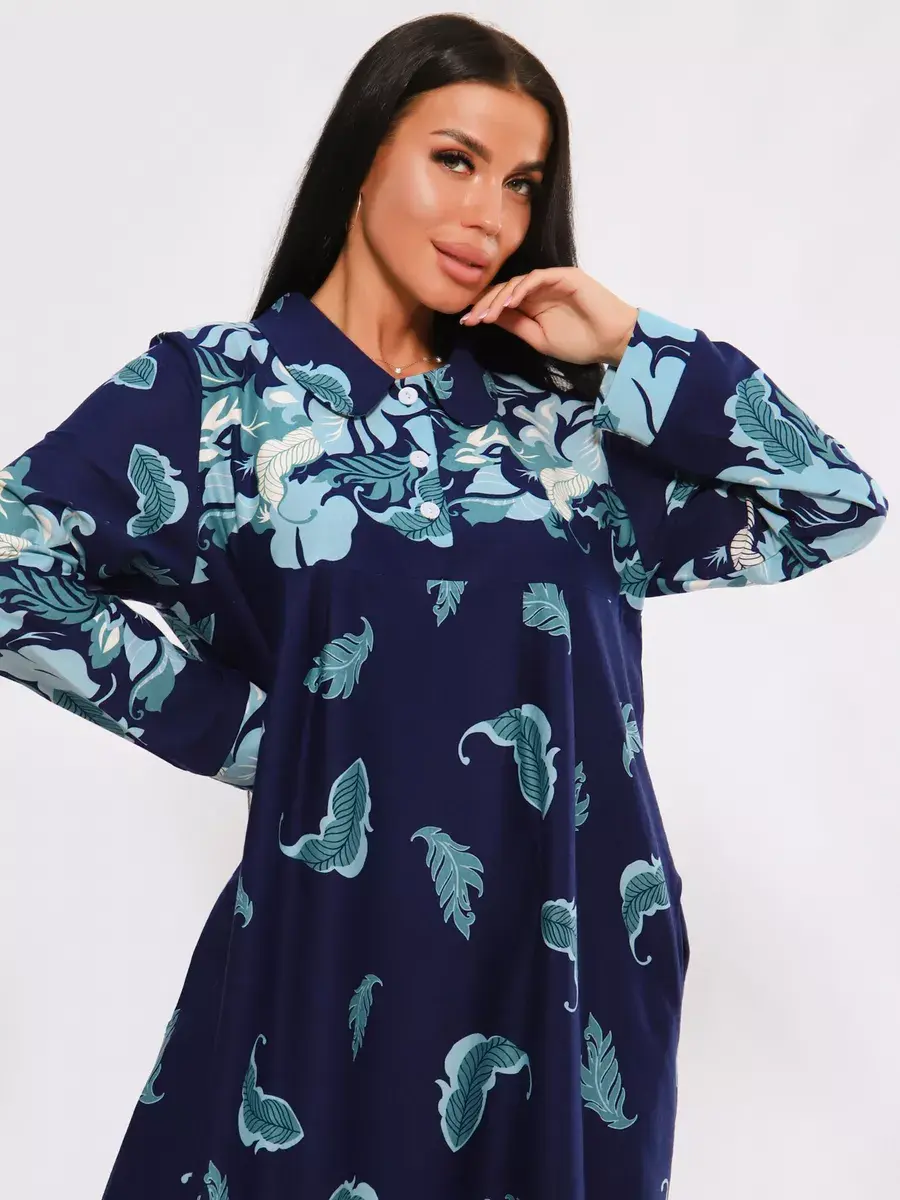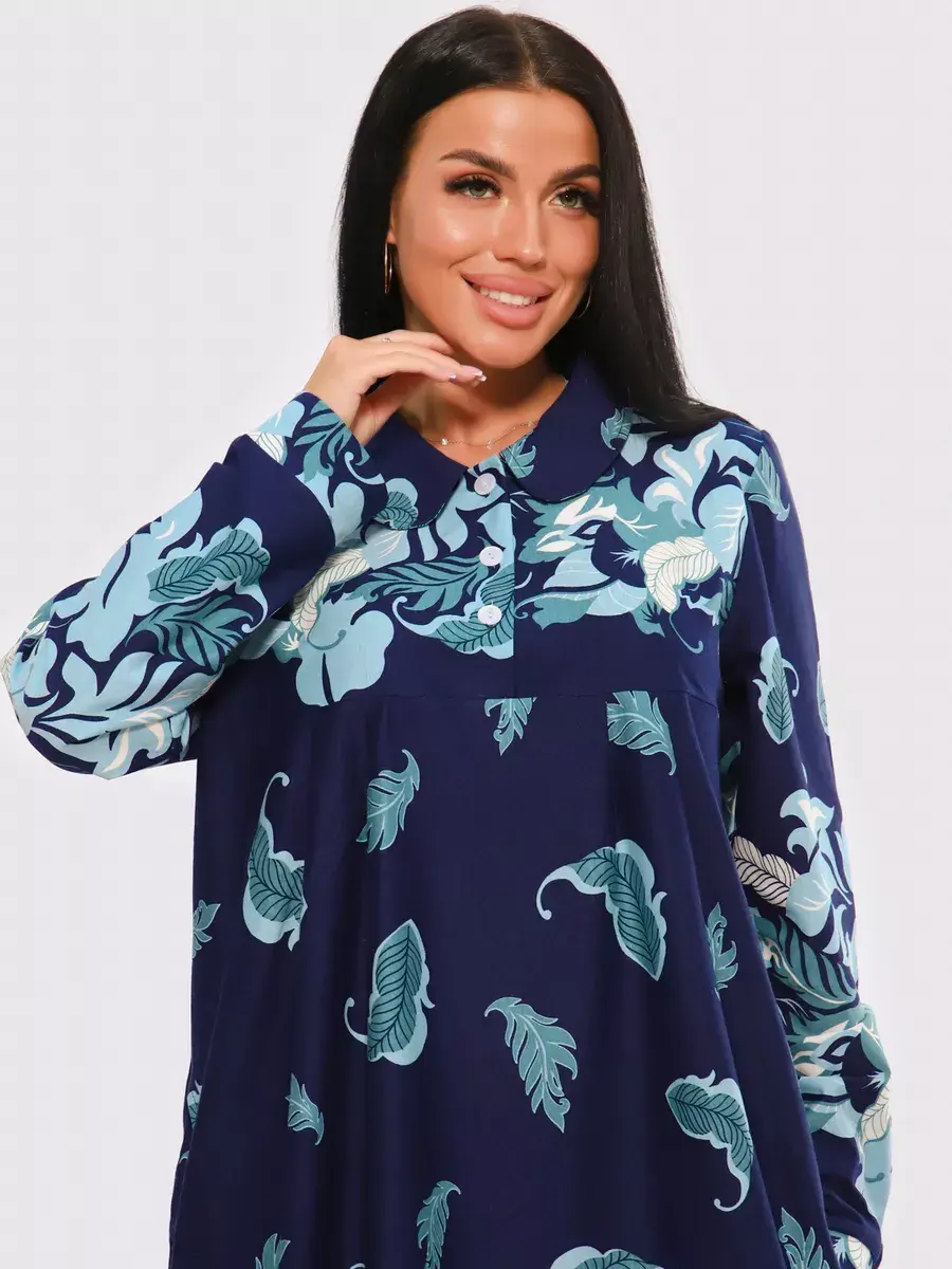 Платье женское из натуральных материалов. Платье закрытое с длинным рукавом и отложным воротником, кокетка застегивается на пуговицы. Платье свободного покроя, расширенный размерный ряд, подойдет для девушек и женщин в положение, для повседневной носки и прогулок.