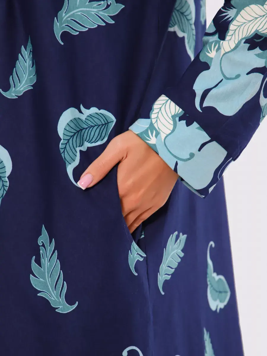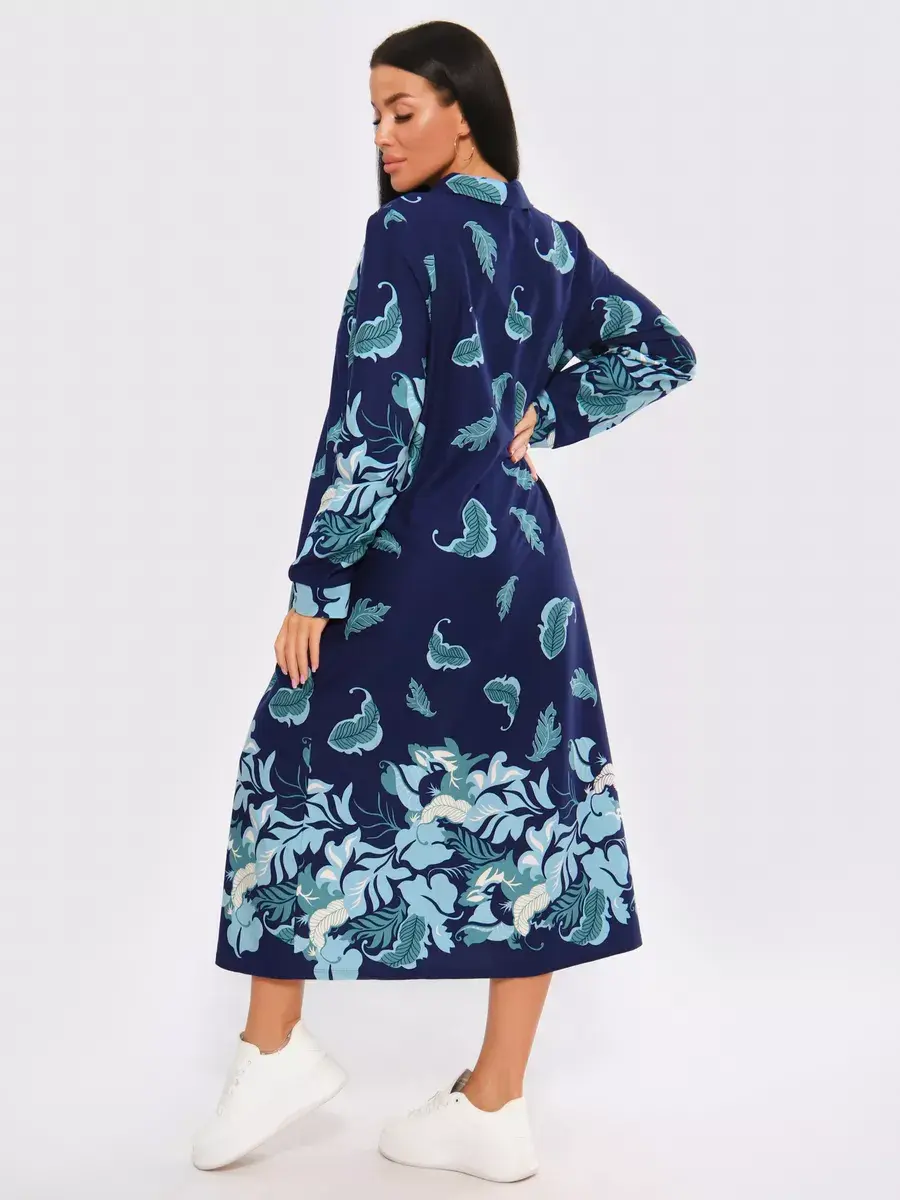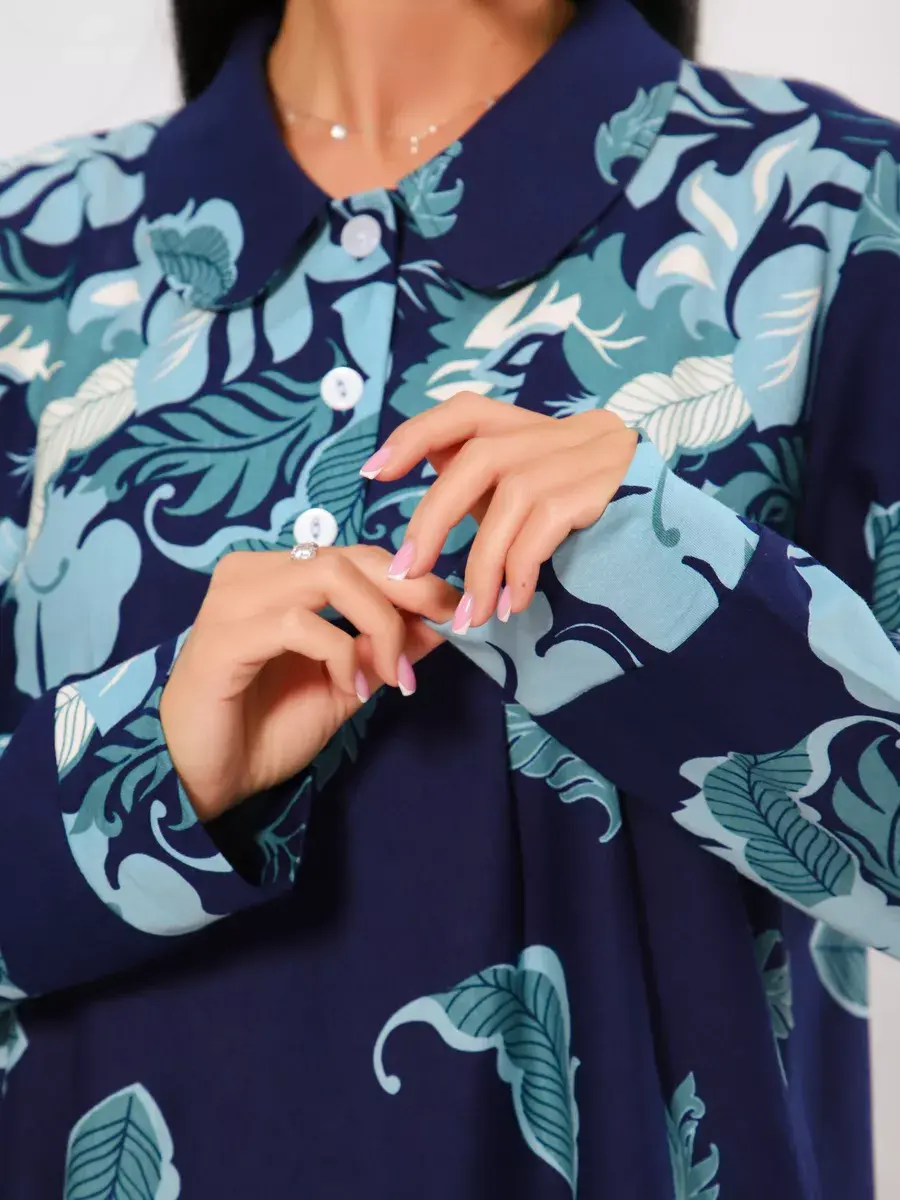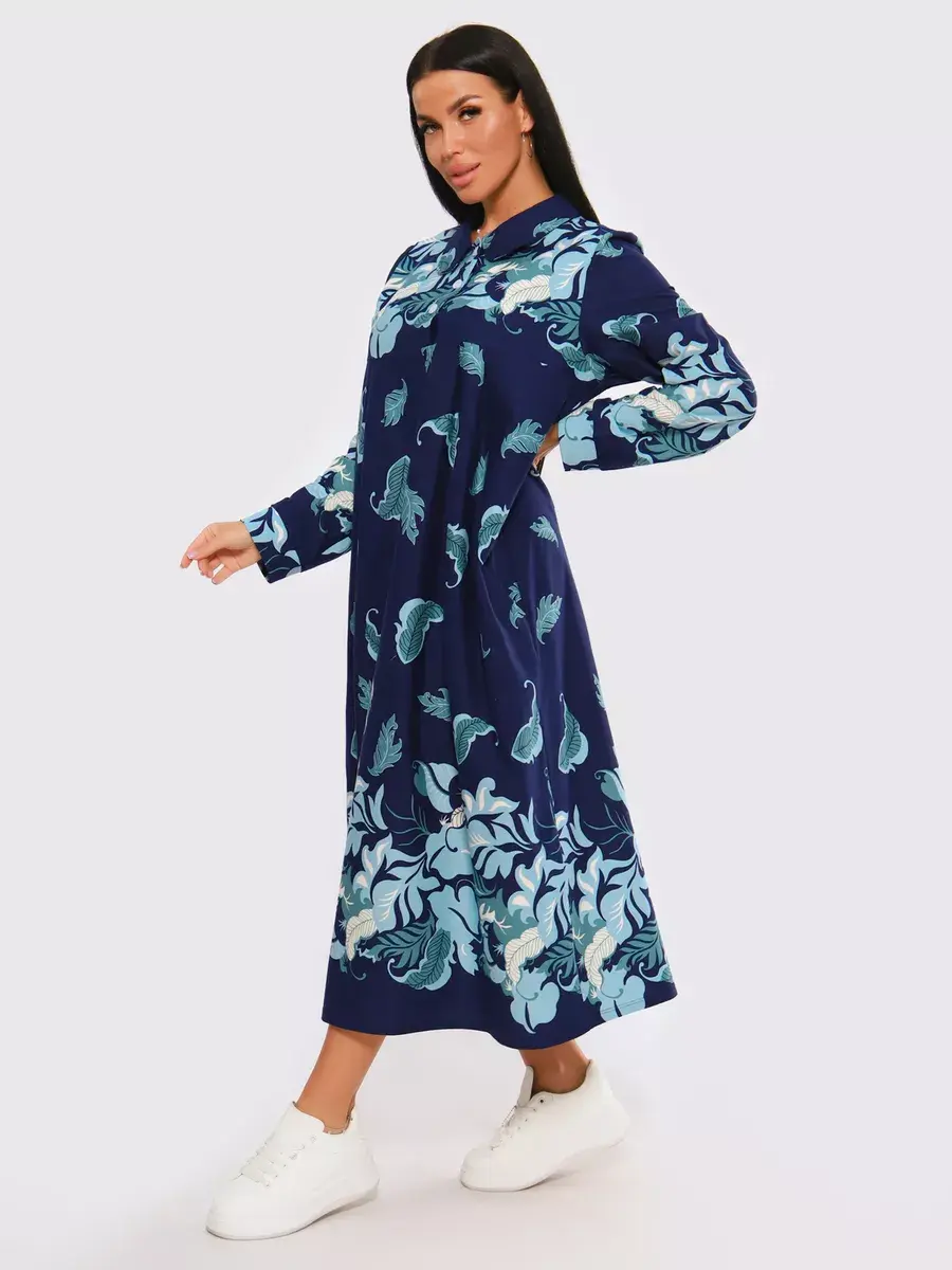 Платье женское из натуральных материалов. Платье закрытое с длинным рукавом и отложным воротником, кокетка застегивается на пуговицы. Платье свободного покроя, расширенный размерный ряд, подойдет для девушек и женщин в положение, для повседневной носки и прогулок.