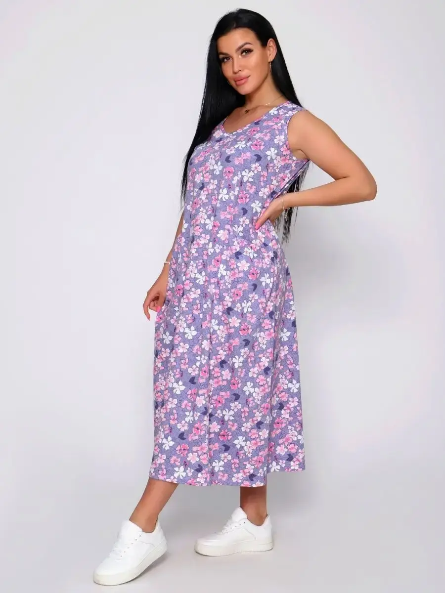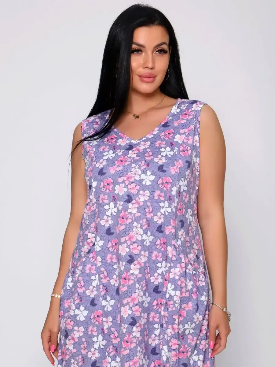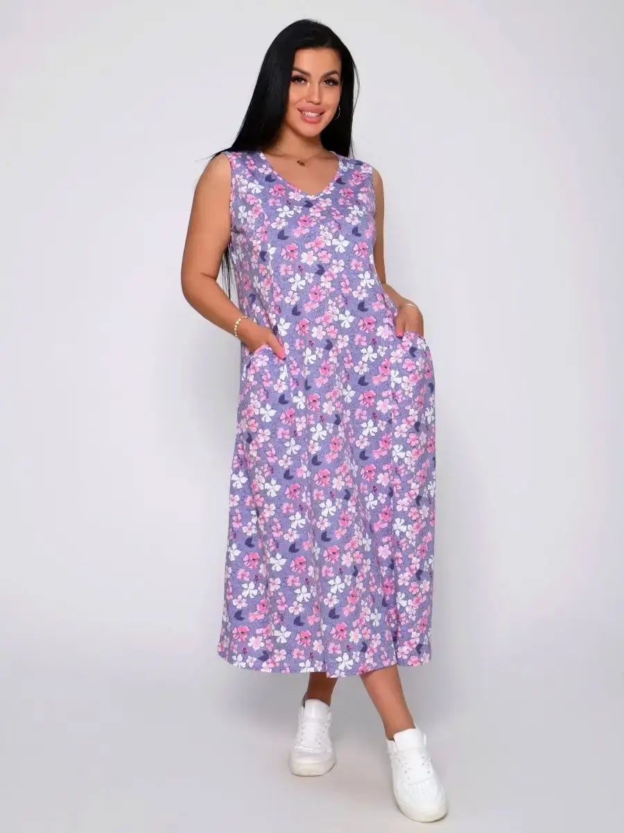 Представляем Вам сарафан из легкого хлопка. Сарафан подойдет для дома, дачи и отдыха на природе. В сарафане из дышащей ткани не будет жарко в летний знойный день. Модель сарафана прямого фасона, подойдет на любую фигуру, он не стеснит Ваших движений, глубокие удобные карманы полюбятся Всем. Вы сможете подобрать свой размер, так как сарафан имеет широкий размерный ряд с 50 по 68 р. Желаем Вам удачных покупок!