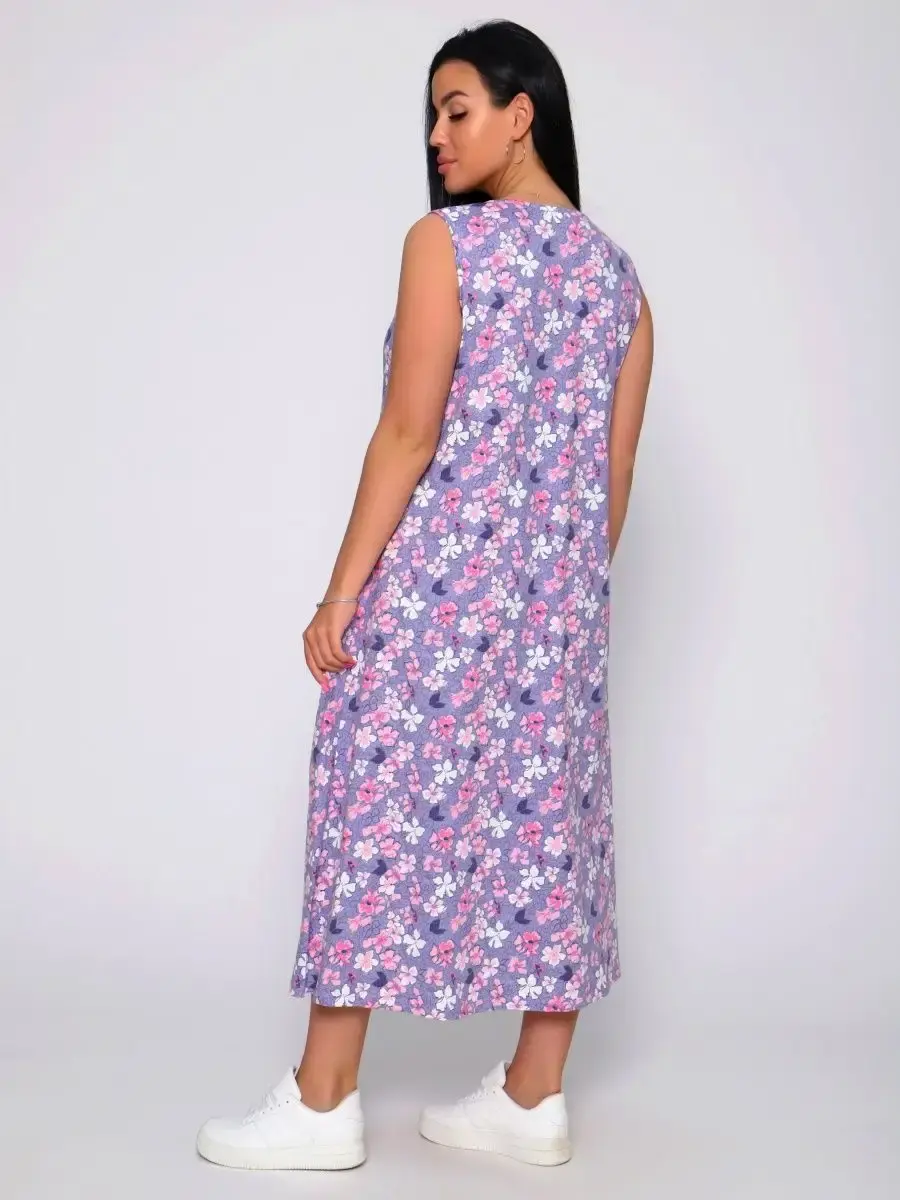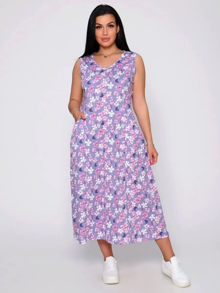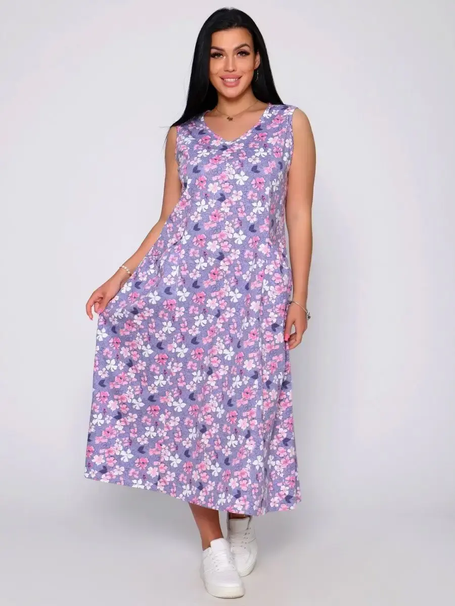 Представляем Вам сарафан из легкого хлопка. Сарафан подойдет для дома, дачи и отдыха на природе. В сарафане из дышащей ткани не будет жарко в летний знойный день. Модель сарафана прямого фасона, подойдет на любую фигуру, он не стеснит Ваших движений, глубокие удобные карманы полюбятся Всем. Вы сможете подобрать свой размер, так как сарафан имеет широкий размерный ряд с 50 по 68 р. Желаем Вам удачных покупок!