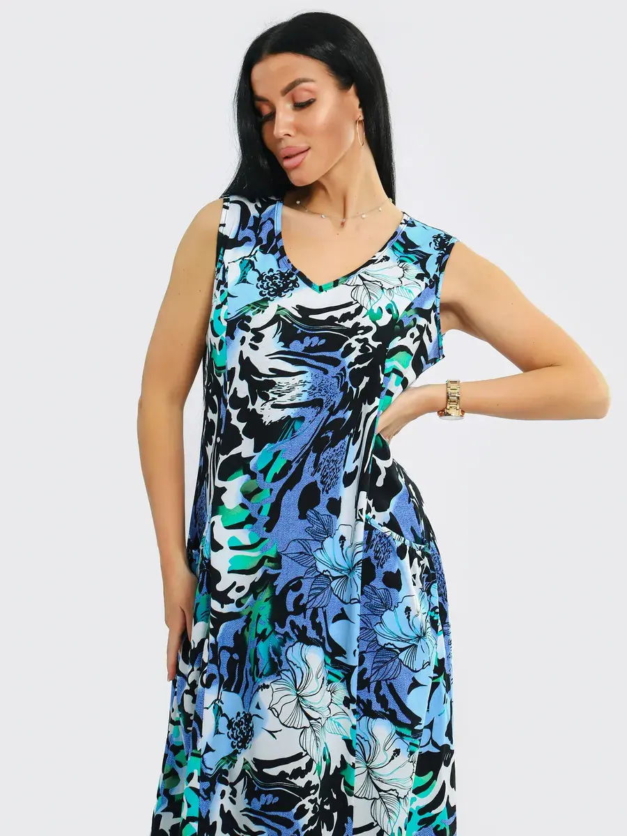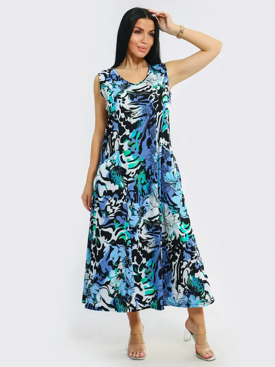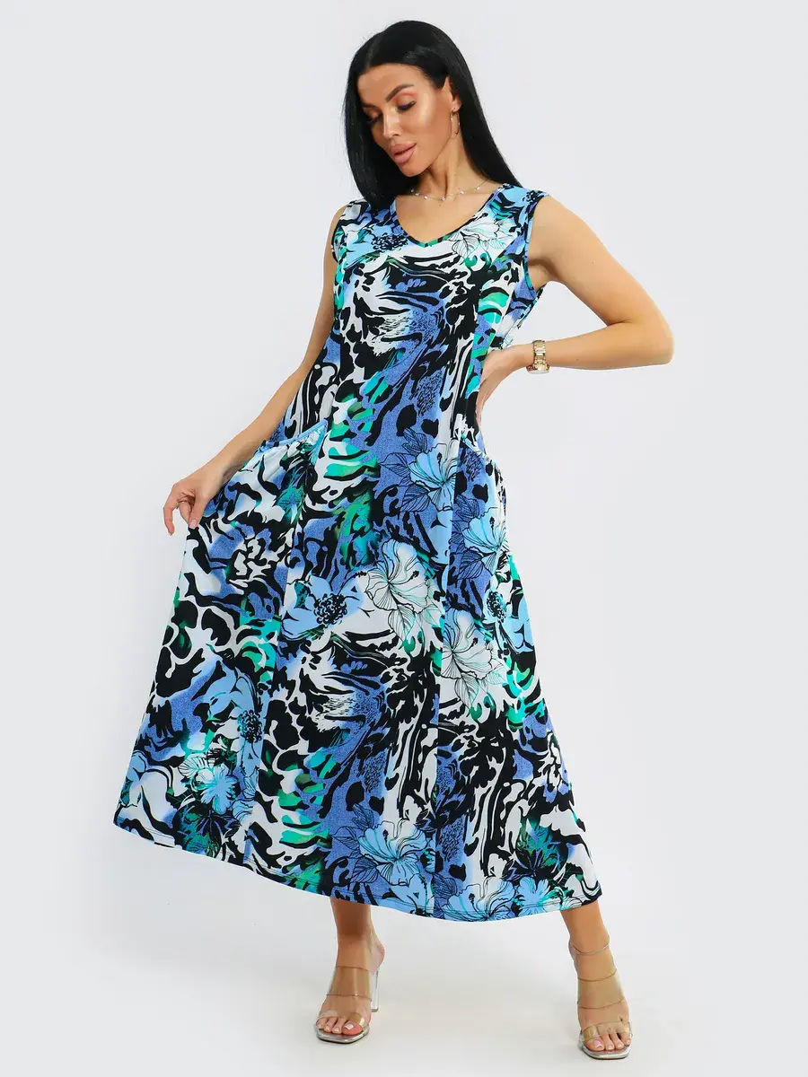 Представляем Вам сарафан из легкого хлопка. Сарафан подойдет для дома, дачи и отдыха на природе. В сарафане из дышащей ткани не будет жарко в летний знойный день. Модель сарафана прямого фасона, подойдет на любую фигуру, он не стеснит Ваших движений, глубокие удобные карманы полюбятся Всем. Вы сможете подобрать свой размер, так как сарафан имеет широкий размерный ряд с 50 по 68 р. Желаем Вам удачных покупок!