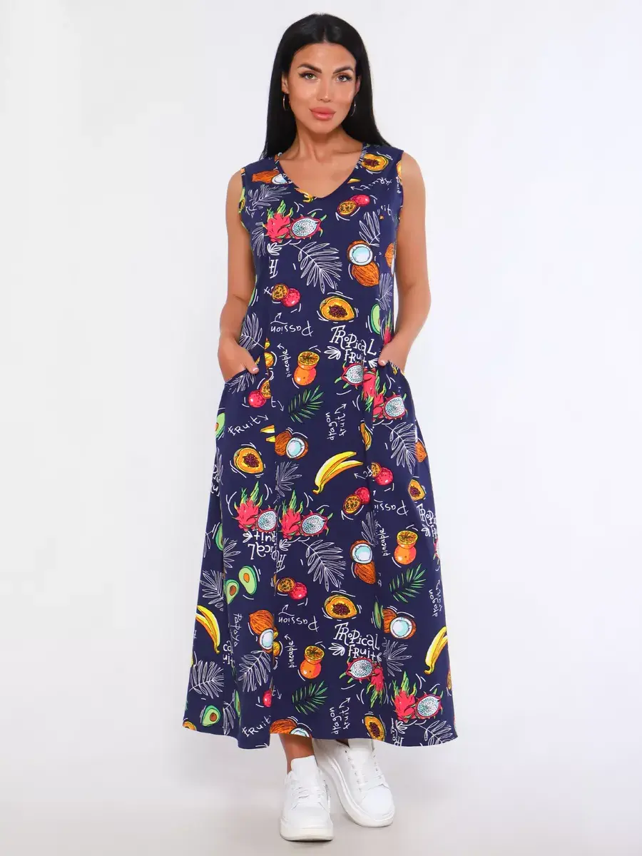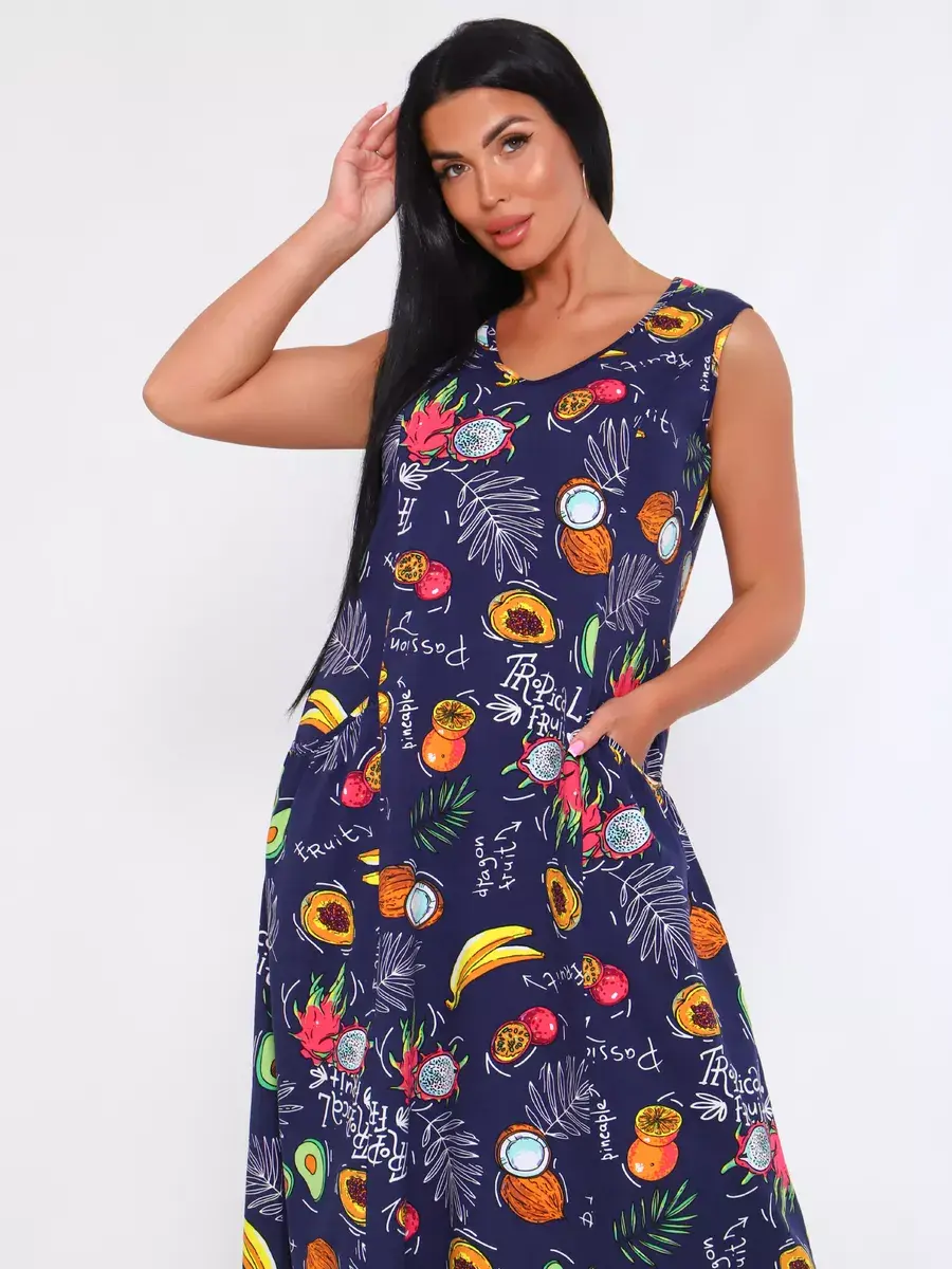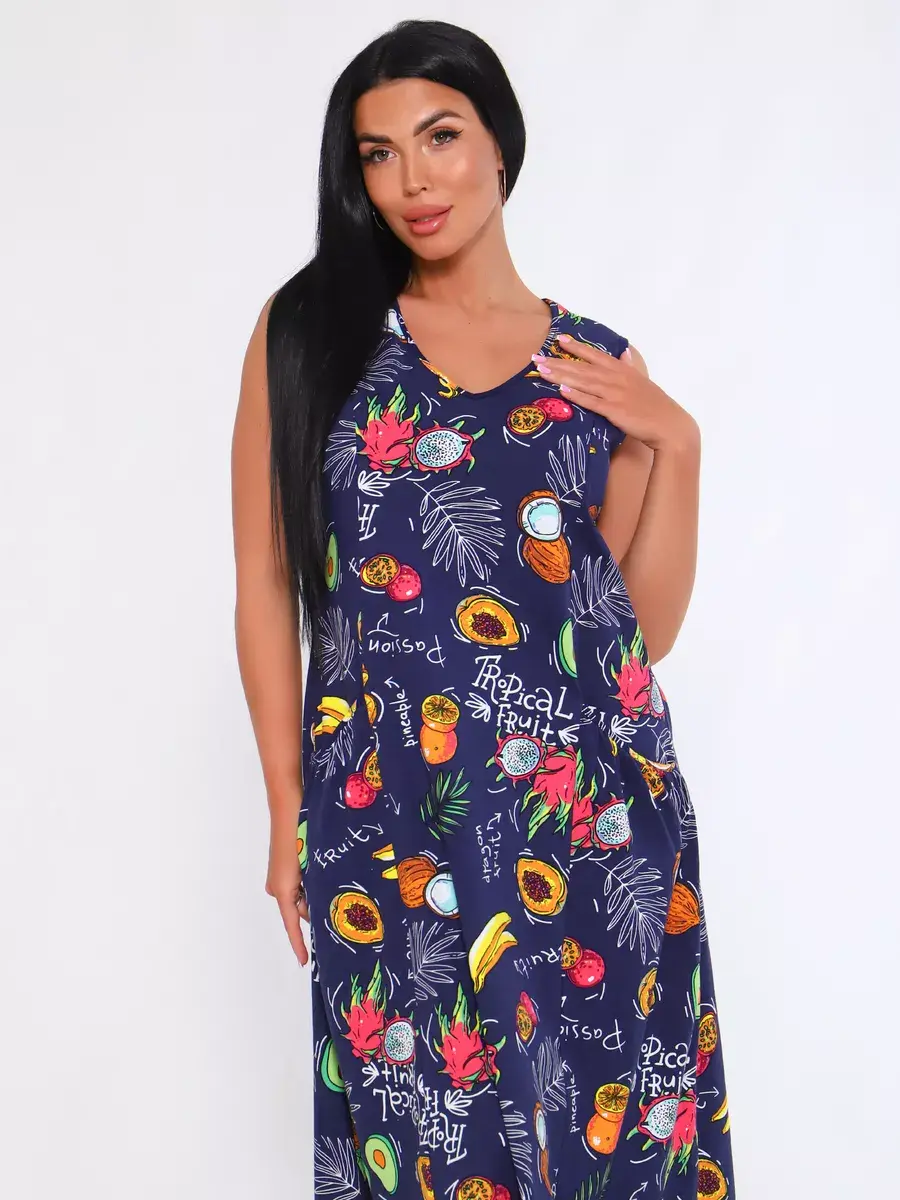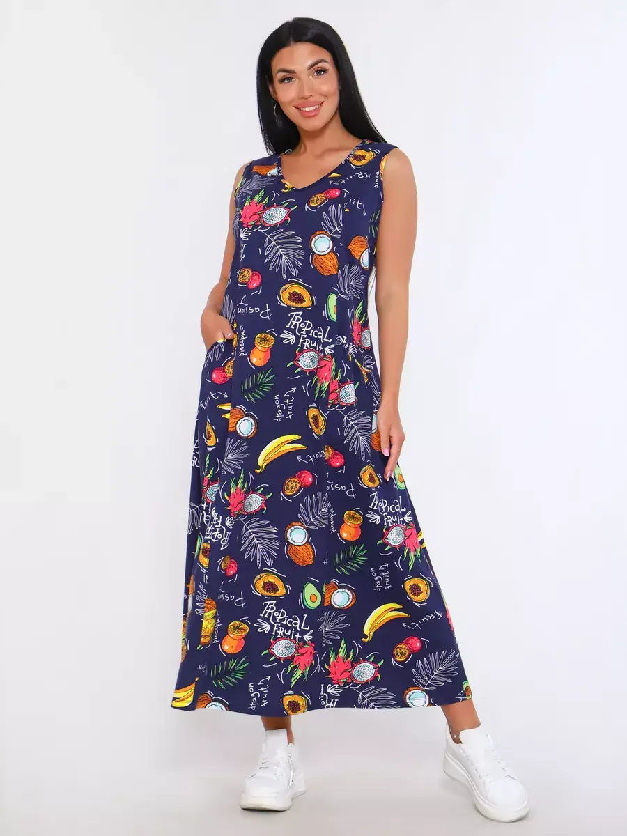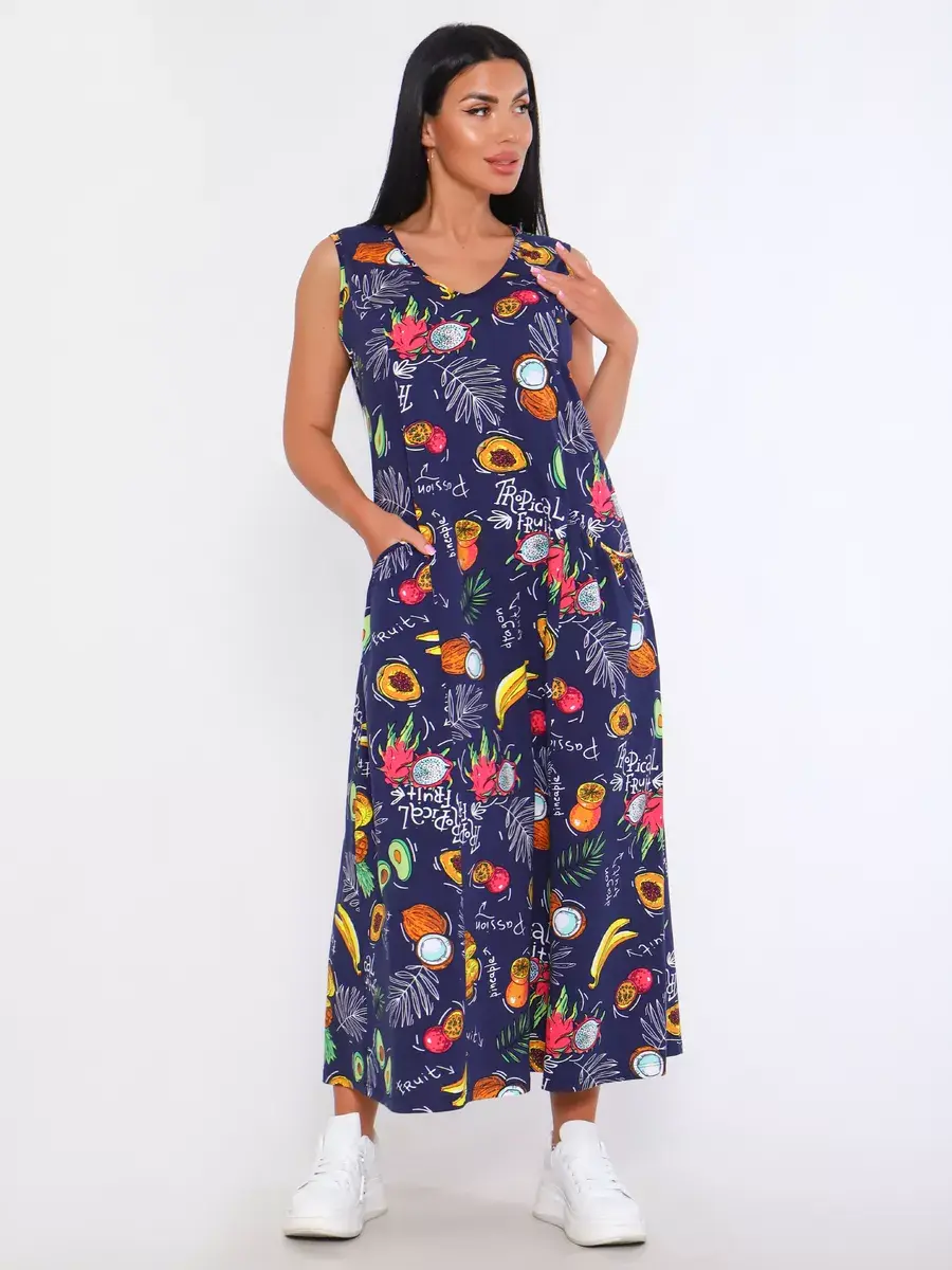 Представляем Вам сарафан из легкого хлопка. Сарафан подойдет для дома, дачи и отдыха на природе. В сарафане из дышащей ткани не будет жарко в летний знойный день. Модель сарафана прямого фасона, подойдет на любую фигуру, он не стеснит Ваших движений, глубокие удобные карманы полюбятся Всем. Вы сможете подобрать свой размер, так как сарафан имеет широкий размерный ряд с 50 по 68 р. Желаем Вам удачных покупок!