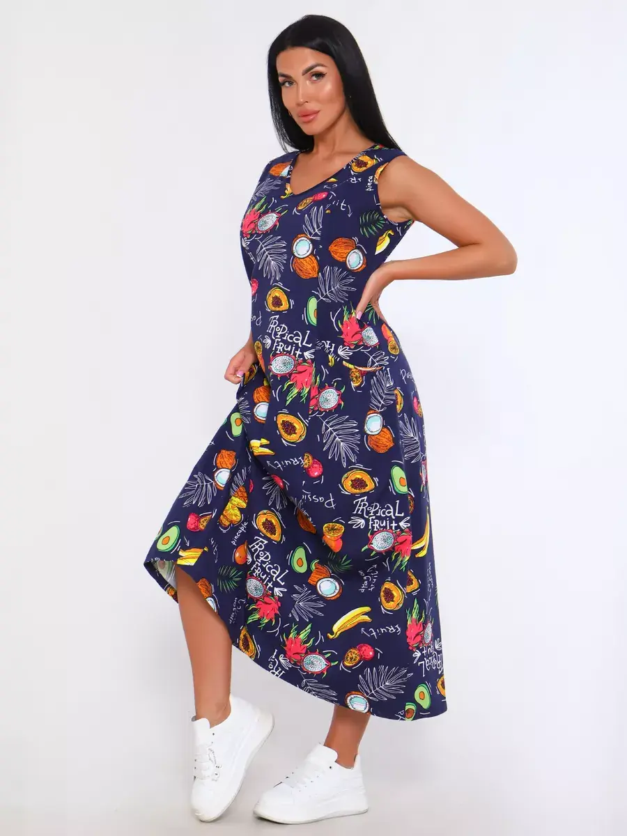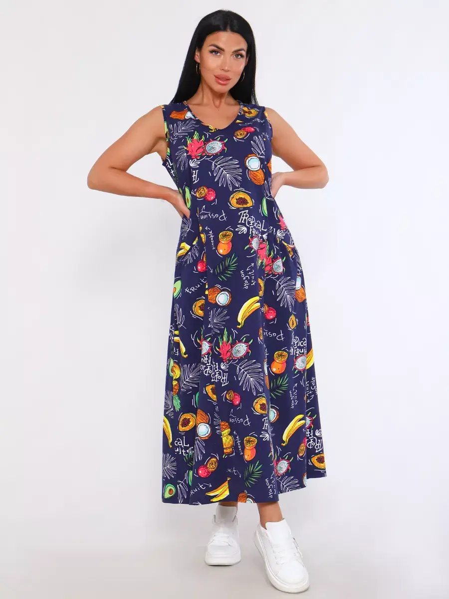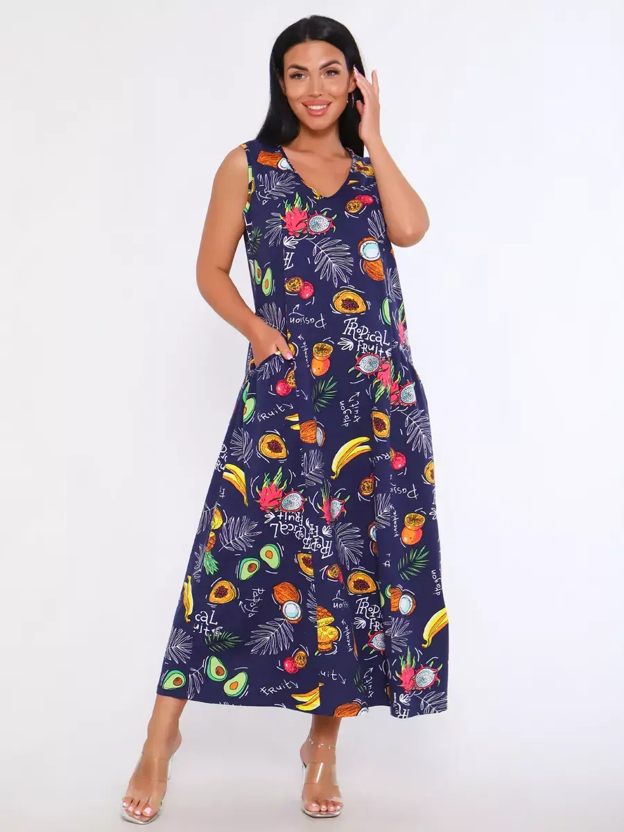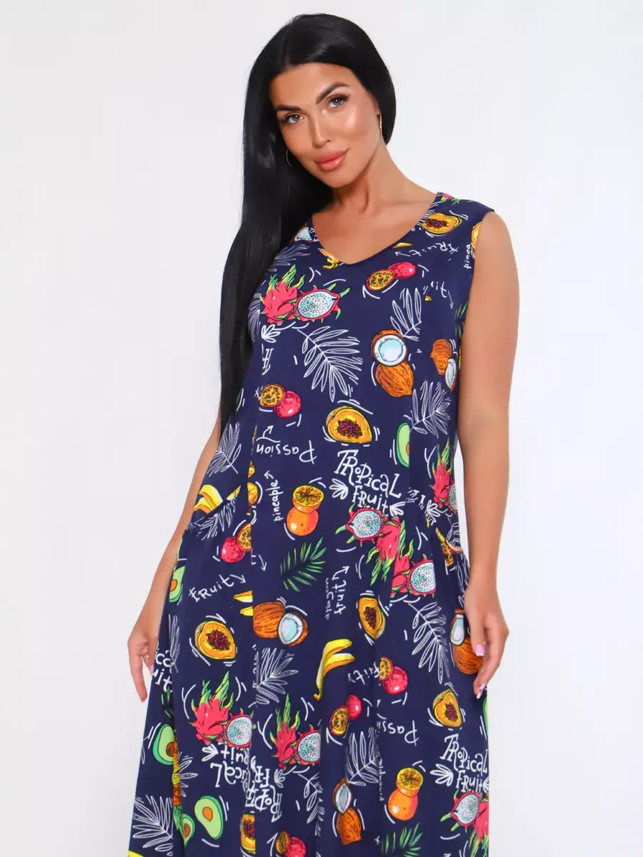 Представляем Вам сарафан из легкого хлопка. Сарафан подойдет для дома, дачи и отдыха на природе. В сарафане из дышащей ткани не будет жарко в летний знойный день. Модель сарафана прямого фасона, подойдет на любую фигуру, он не стеснит Ваших движений, глубокие удобные карманы полюбятся Всем. Вы сможете подобрать свой размер, так как сарафан имеет широкий размерный ряд с 50 по 68 р. Желаем Вам удачных покупок!