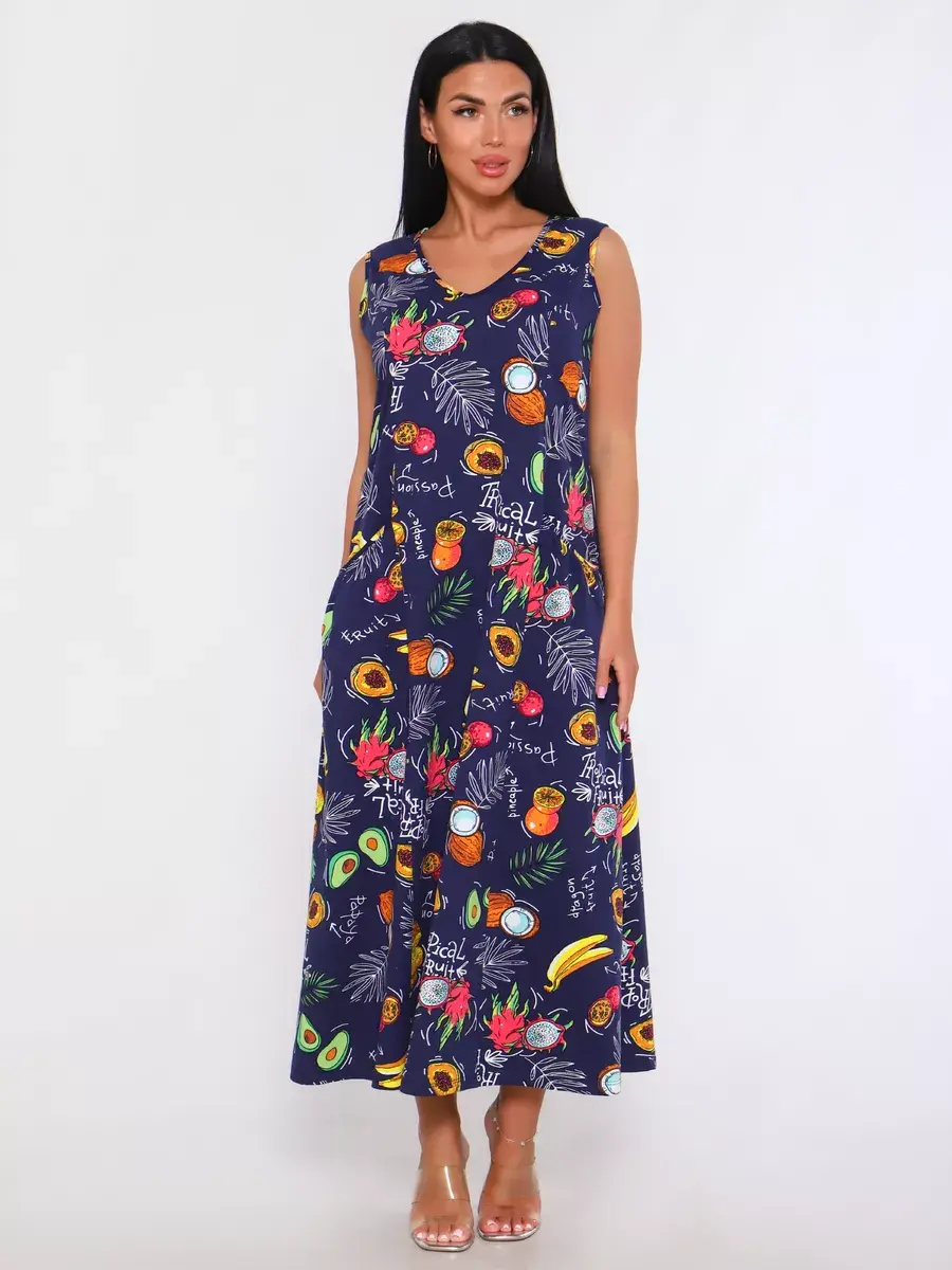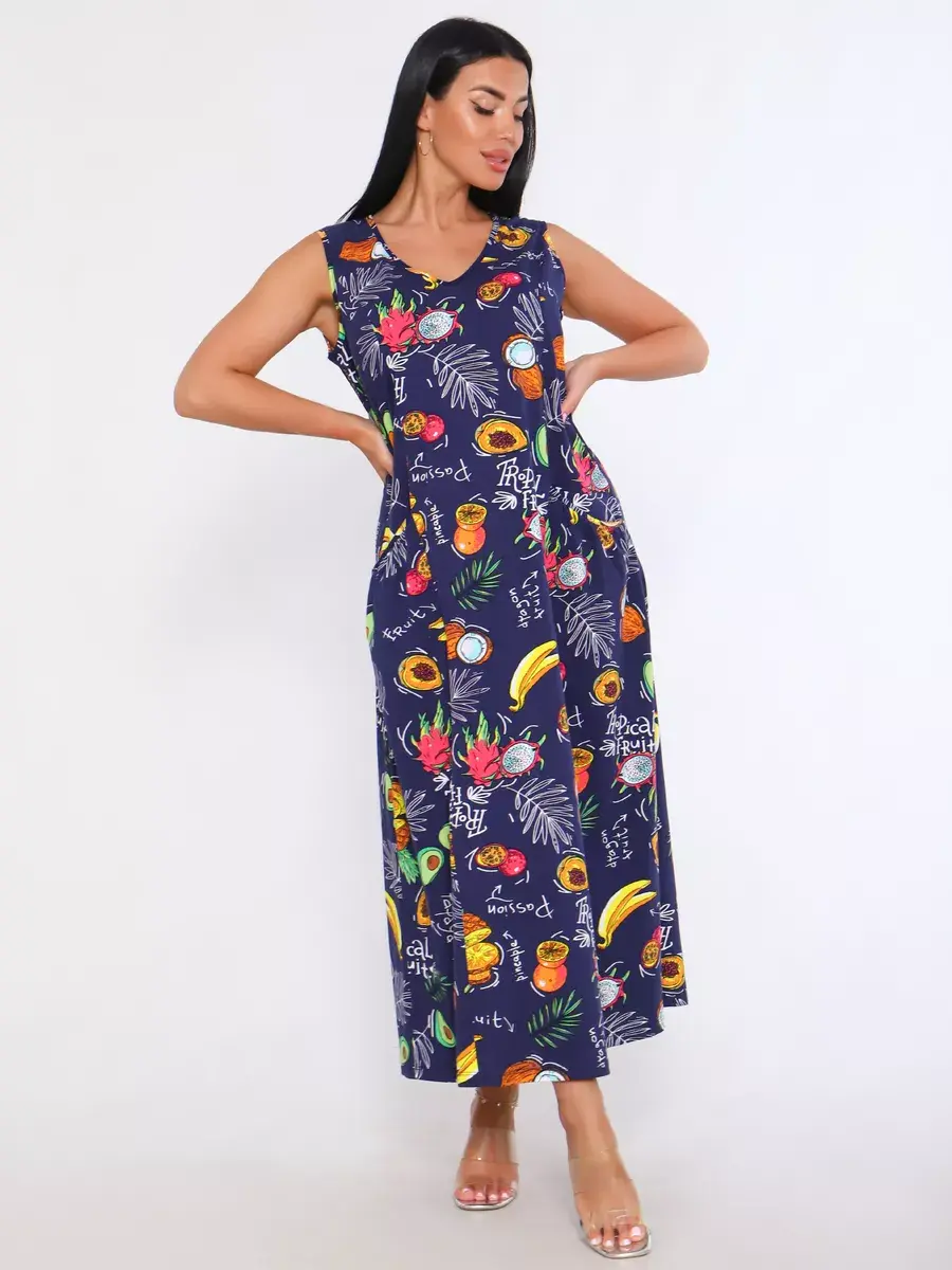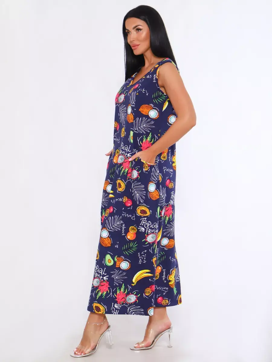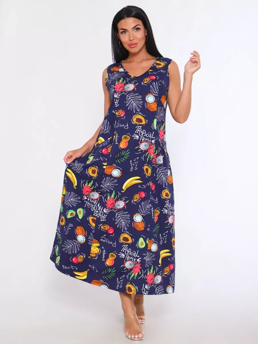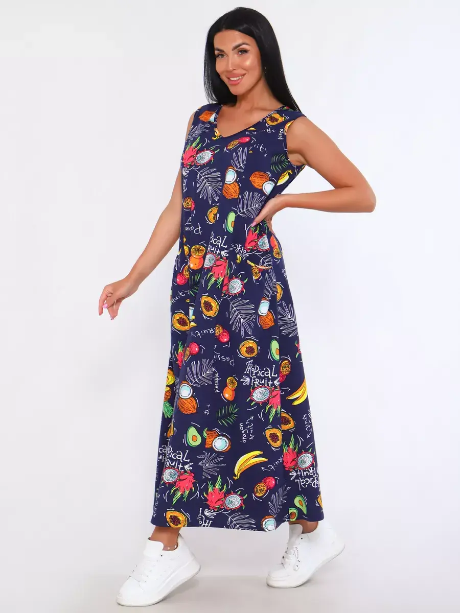 Представляем Вам сарафан из легкого хлопка. Сарафан подойдет для дома, дачи и отдыха на природе. В сарафане из дышащей ткани не будет жарко в летний знойный день. Модель сарафана прямого фасона, подойдет на любую фигуру, он не стеснит Ваших движений, глубокие удобные карманы полюбятся Всем. Вы сможете подобрать свой размер, так как сарафан имеет широкий размерный ряд с 50 по 68 р. Желаем Вам удачных покупок!
