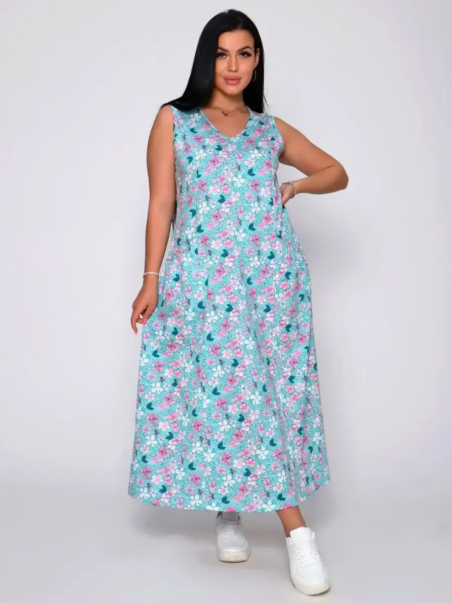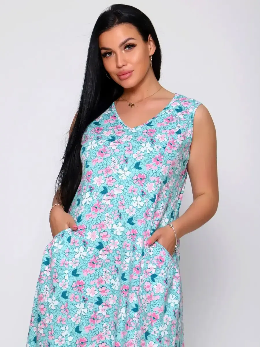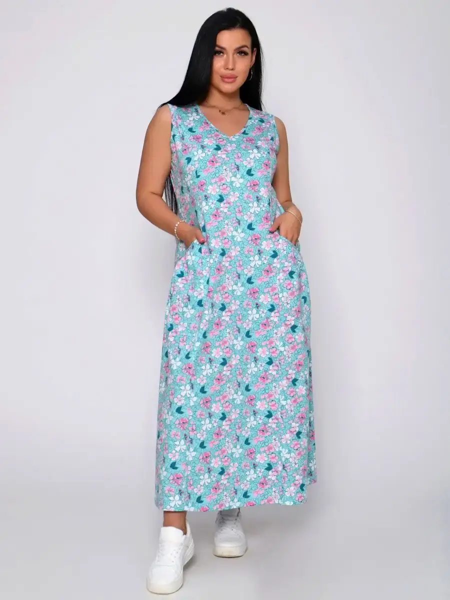 Представляем Вам сарафан из легкого хлопка. Сарафан подойдет для дома, дачи и отдыха на природе. В сарафане из дышащей ткани не будет жарко в летний знойный день. Модель сарафана прямого фасона, подойдет на любую фигуру, он не стеснит Ваших движений, глубокие удобные карманы полюбятся Всем. Вы сможете подобрать свой размер, так как сарафан имеет широкий размерный ряд с 50 по 68 р. Желаем Вам удачных покупок!