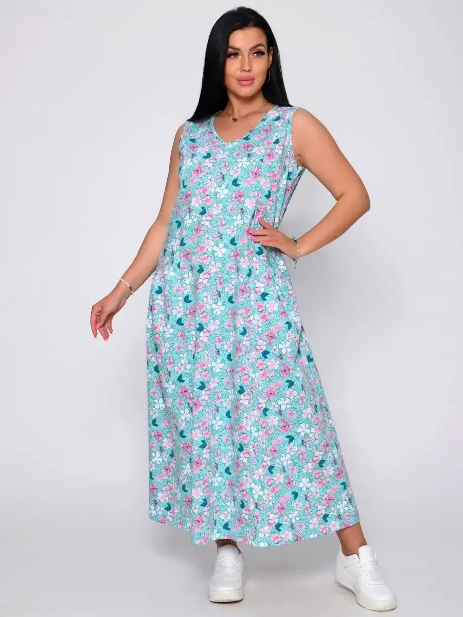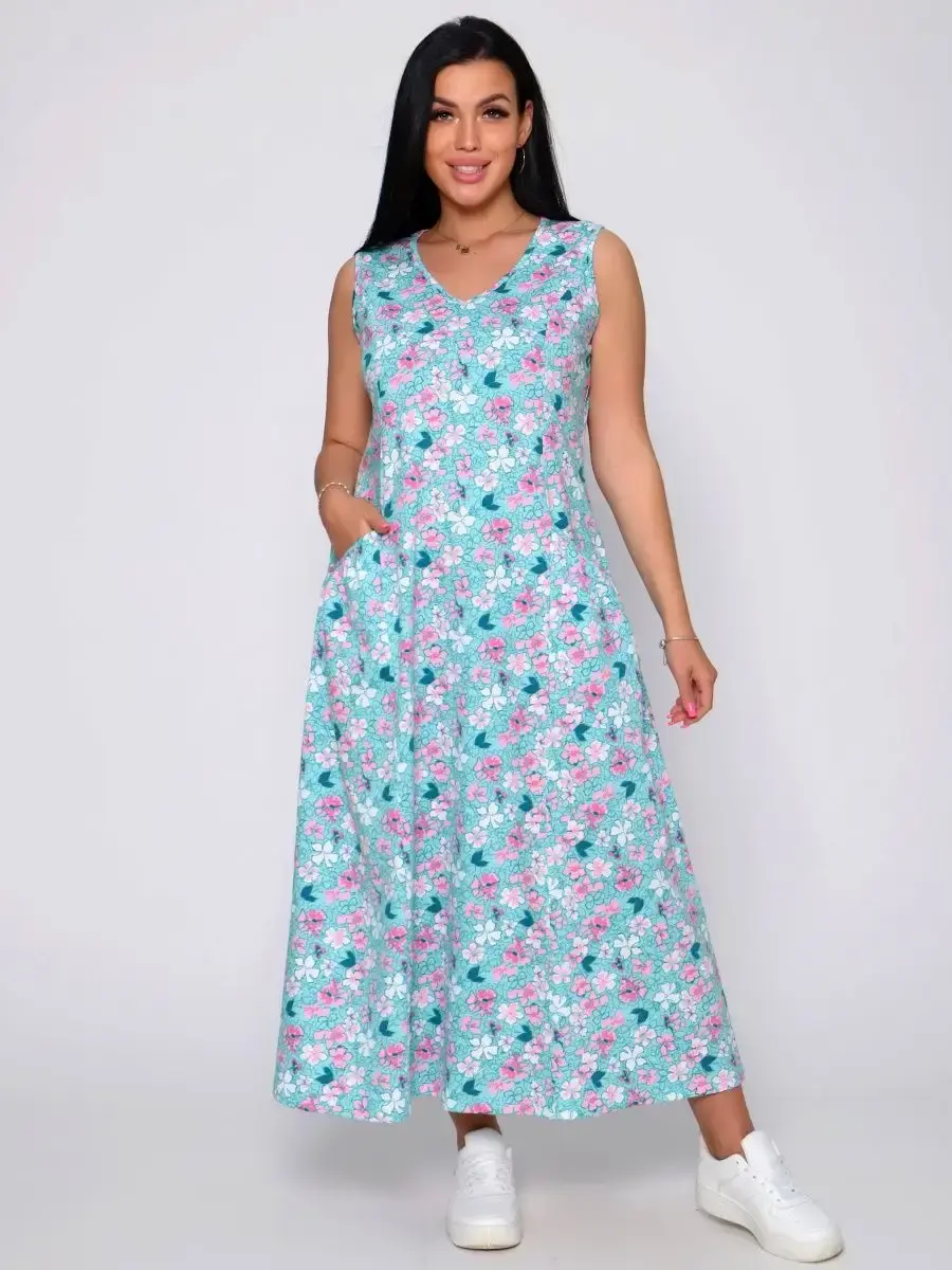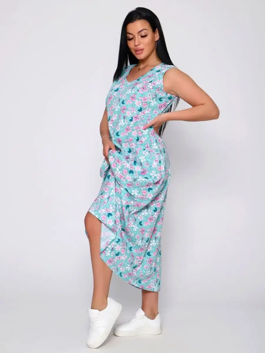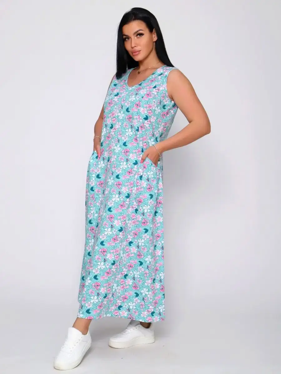 Представляем Вам сарафан из легкого хлопка. Сарафан подойдет для дома, дачи и отдыха на природе. В сарафане из дышащей ткани не будет жарко в летний знойный день. Модель сарафана прямого фасона, подойдет на любую фигуру, он не стеснит Ваших движений, глубокие удобные карманы полюбятся Всем. Вы сможете подобрать свой размер, так как сарафан имеет широкий размерный ряд с 50 по 68 р. Желаем Вам удачных покупок!