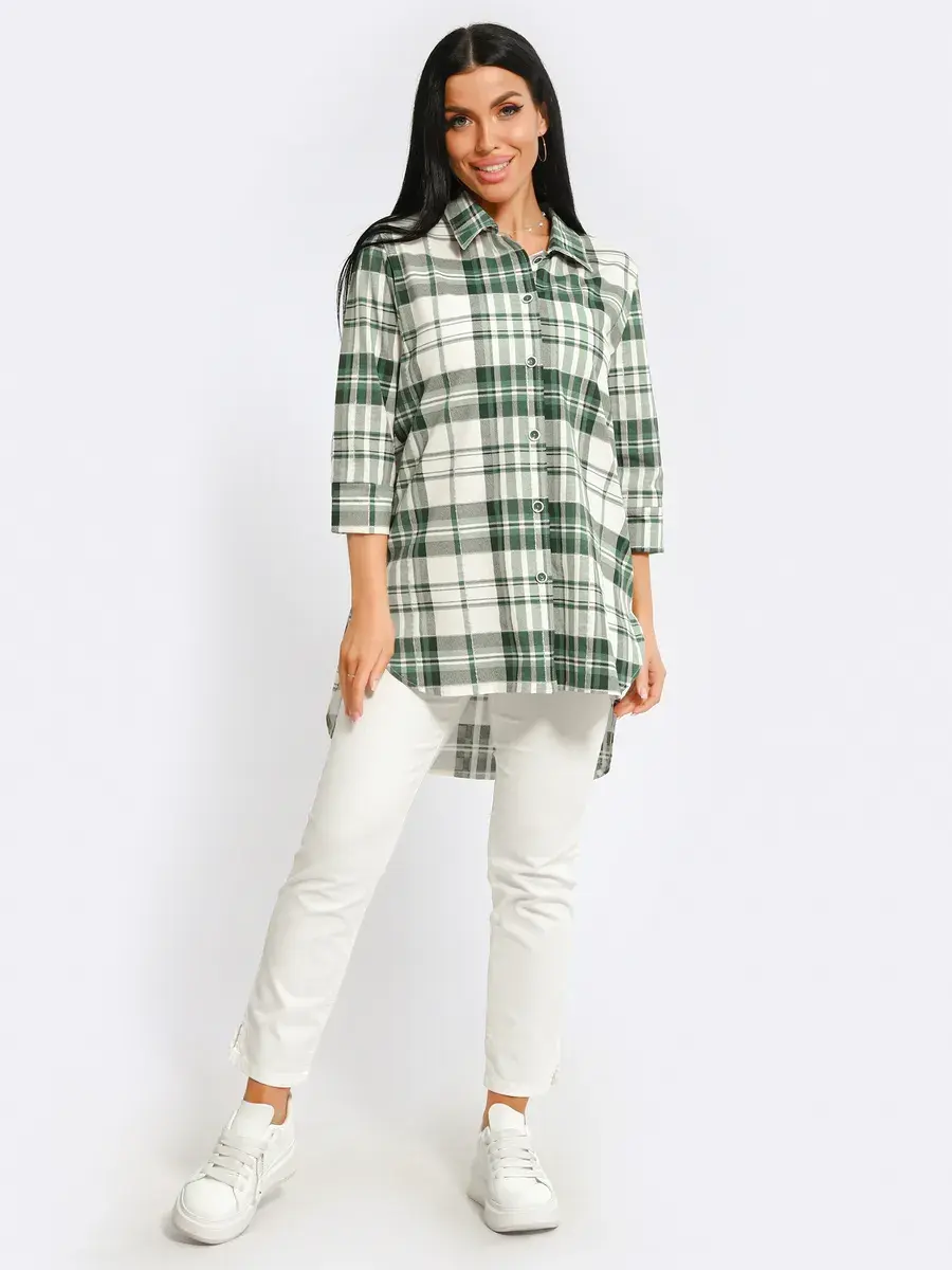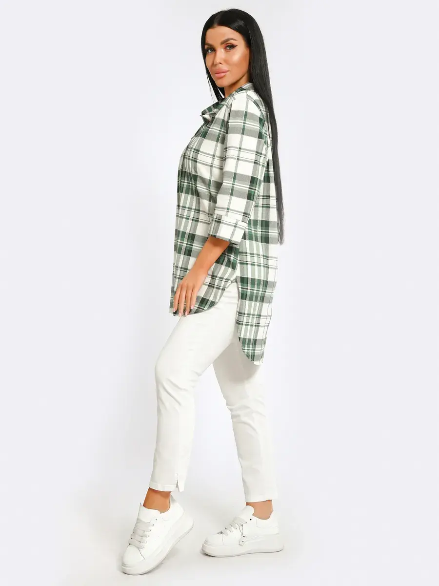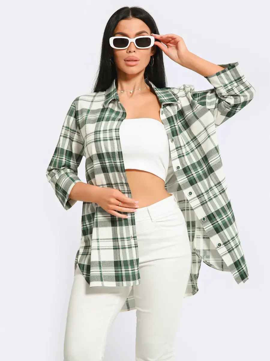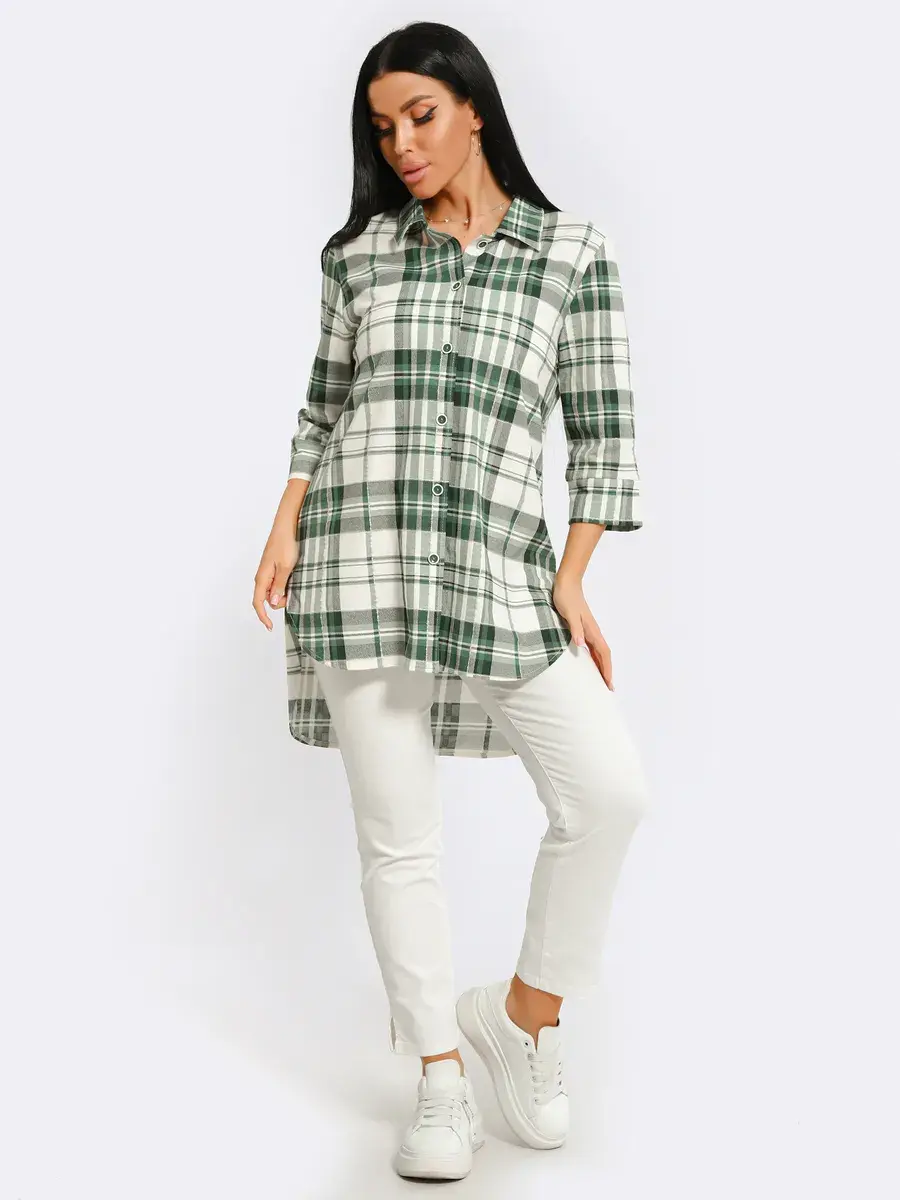 Эта женская рубашка — отличный выбор для повседневного гардероба. Выполненная из хлопка, она станет удобным и стильным элементом вашего образа. Удлиненная модель подходит для женщин, предпочитающих комфорт и свободу движений. В клетку — актуальный узор, который всегда в моде и отлично сочетает элегантность с непринужденностью.Особенность этой вещи заключается в ее универсальности. Туника может быть использована как домашняя одежда благодаря своей мягкости и уюту трикотажной ткани. Этой осенью она станет идеальным спутником на каждый день. Кроме того, свободный оверсайз крой делает ее подходящей даже для беременных женщин, обеспечивая нужное пространство и комфорт.Рубашка подойдет не только для дома, но и для выхода в офис или на работу. Сдержанный стиль позволит ей вписаться в деловую атмосферу, сохраняя при этом необходимое чувство стиля и индивидуальности. Также она может стать отличным вариантом базовой вещи для школы или случайных встреч с друзьями.Эта рубашка также может служить чудесным подарком. Разнообразие способов носки позволяет комбинировать ее с джинсами или леггинсами, подчеркивая ваш образ как нежный и романтичный, так и более официальный или городской.Выбирая эту вещь для себя или в качестве подарка близким людям, вы приобретаете не просто одежду больших размеров - это поистине универсальная находка 2025 года! Ее удобно носить каждый день благодаря качеству материала из хлопка, которое не вызывает раздражения кожи.Наслаждайтесь свободой движения и создавайте свой индивидуальный стиль вместе с этой удлиненной туникой. Она идеально гармонирует с многоликим образом жизни современных женщин: от работы до дома без необходимости переодевания.Так же приятно знать что эта вещь способствует вашему повседневному комфорту вне зависимости от сезона — даже ранней осенью она будет сохранять тепло.Не упустите возможность пополнить свой гардероб стилем простоты с ноткой классики!