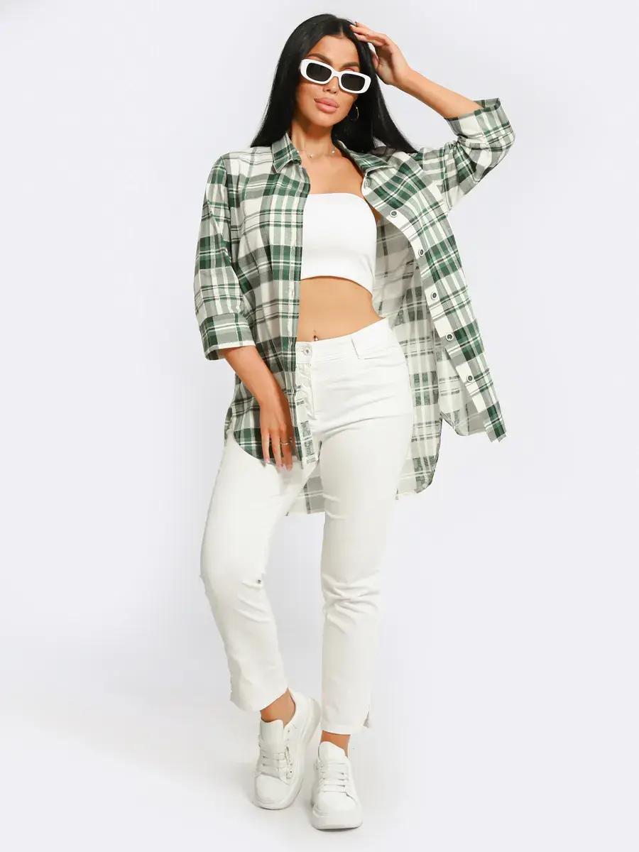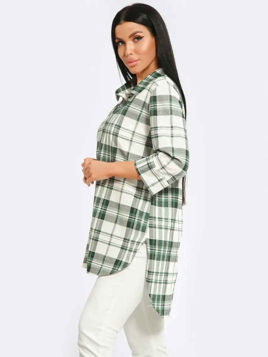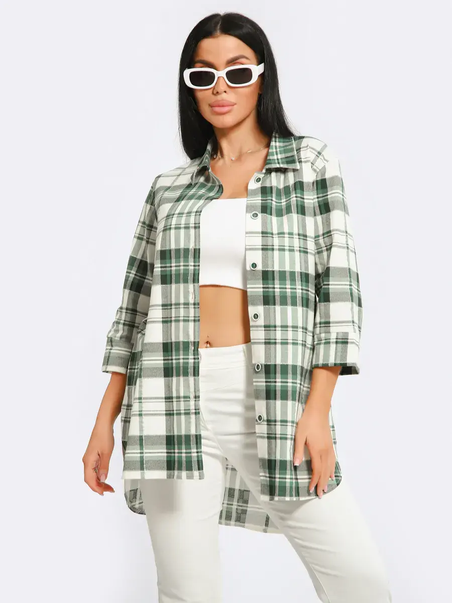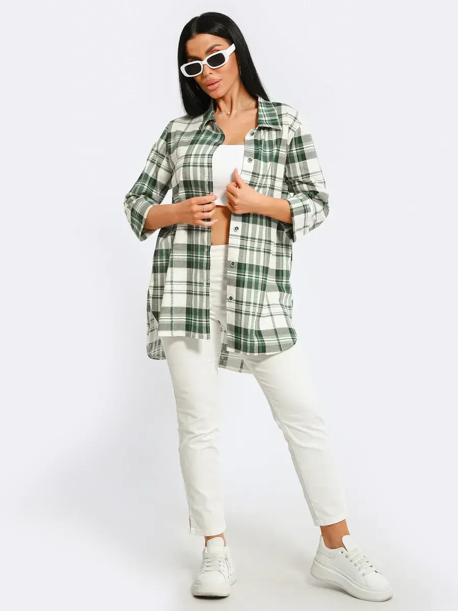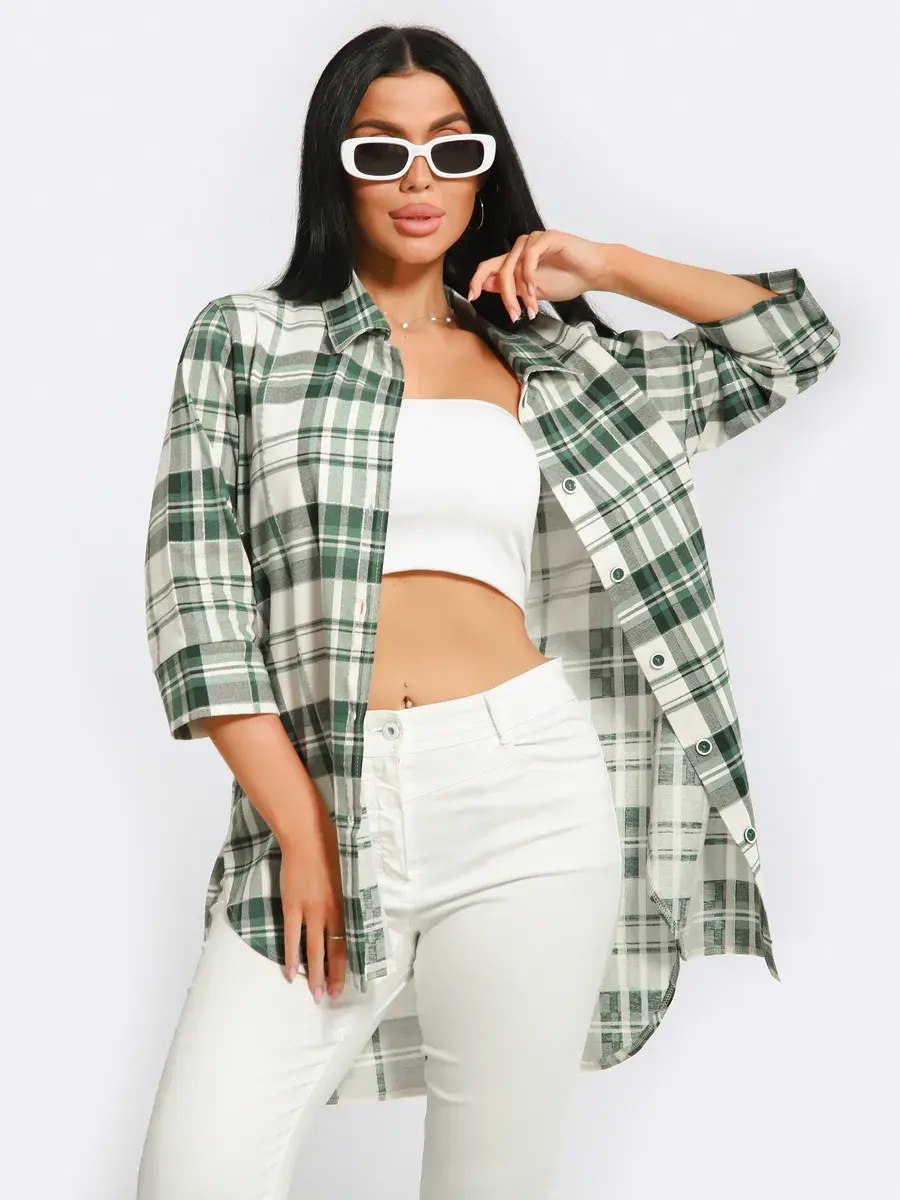 Эта женская рубашка — отличный выбор для повседневного гардероба. Выполненная из хлопка, она станет удобным и стильным элементом вашего образа. Удлиненная модель подходит для женщин, предпочитающих комфорт и свободу движений. В клетку — актуальный узор, который всегда в моде и отлично сочетает элегантность с непринужденностью.Особенность этой вещи заключается в ее универсальности. Туника может быть использована как домашняя одежда благодаря своей мягкости и уюту трикотажной ткани. Этой осенью она станет идеальным спутником на каждый день. Кроме того, свободный оверсайз крой делает ее подходящей даже для беременных женщин, обеспечивая нужное пространство и комфорт.Рубашка подойдет не только для дома, но и для выхода в офис или на работу. Сдержанный стиль позволит ей вписаться в деловую атмосферу, сохраняя при этом необходимое чувство стиля и индивидуальности. Также она может стать отличным вариантом базовой вещи для школы или случайных встреч с друзьями.Эта рубашка также может служить чудесным подарком. Разнообразие способов носки позволяет комбинировать ее с джинсами или леггинсами, подчеркивая ваш образ как нежный и романтичный, так и более официальный или городской.Выбирая эту вещь для себя или в качестве подарка близким людям, вы приобретаете не просто одежду больших размеров - это поистине универсальная находка 2025 года! Ее удобно носить каждый день благодаря качеству материала из хлопка, которое не вызывает раздражения кожи.Наслаждайтесь свободой движения и создавайте свой индивидуальный стиль вместе с этой удлиненной туникой. Она идеально гармонирует с многоликим образом жизни современных женщин: от работы до дома без необходимости переодевания.Так же приятно знать что эта вещь способствует вашему повседневному комфорту вне зависимости от сезона — даже ранней осенью она будет сохранять тепло.Не упустите возможность пополнить свой гардероб стилем простоты с ноткой классики!