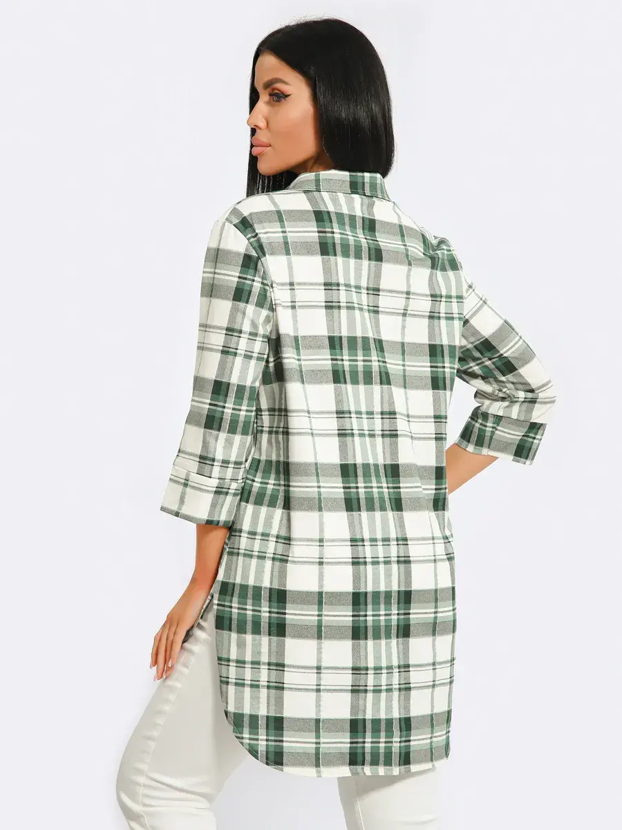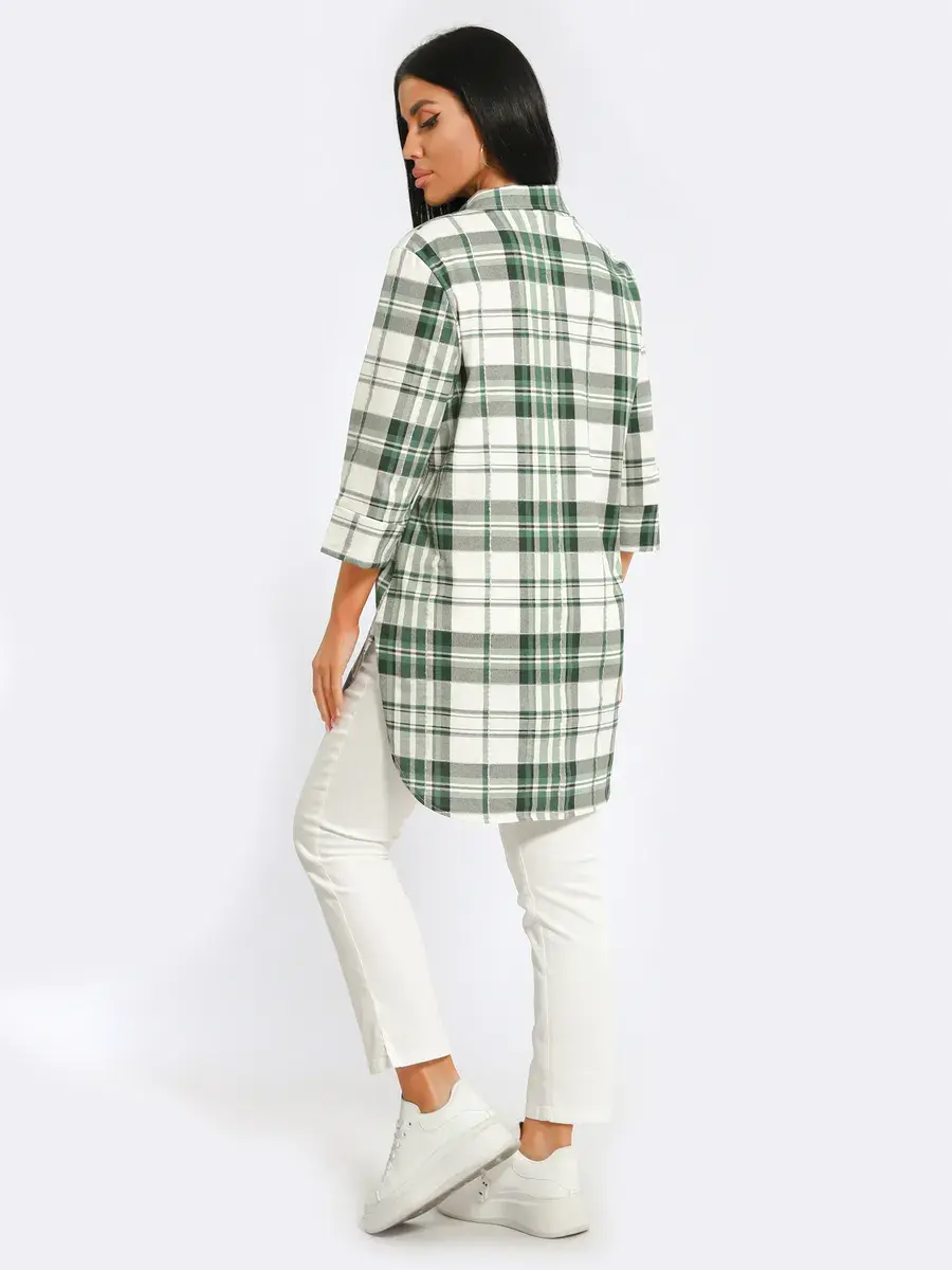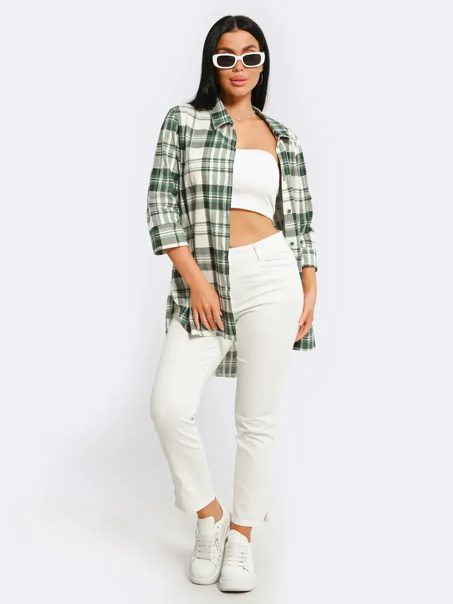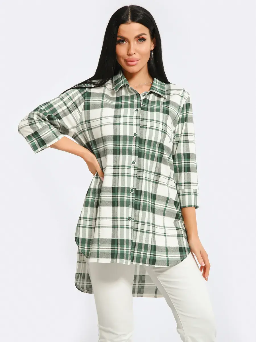Эта женская рубашка — отличный выбор для повседневного гардероба. Выполненная из хлопка, она станет удобным и стильным элементом вашего образа. Удлиненная модель подходит для женщин, предпочитающих комфорт и свободу движений. В клетку — актуальный узор, который всегда в моде и отлично сочетает элегантность с непринужденностью.Особенность этой вещи заключается в ее универсальности. Туника может быть использована как домашняя одежда благодаря своей мягкости и уюту трикотажной ткани. Этой осенью она станет идеальным спутником на каждый день. Кроме того, свободный оверсайз крой делает ее подходящей даже для беременных женщин, обеспечивая нужное пространство и комфорт.Рубашка подойдет не только для дома, но и для выхода в офис или на работу. Сдержанный стиль позволит ей вписаться в деловую атмосферу, сохраняя при этом необходимое чувство стиля и индивидуальности. Также она может стать отличным вариантом базовой вещи для школы или случайных встреч с друзьями.Эта рубашка также может служить чудесным подарком. Разнообразие способов носки позволяет комбинировать ее с джинсами или леггинсами, подчеркивая ваш образ как нежный и романтичный, так и более официальный или городской.Выбирая эту вещь для себя или в качестве подарка близким людям, вы приобретаете не просто одежду больших размеров - это поистине универсальная находка 2025 года! Ее удобно носить каждый день благодаря качеству материала из хлопка, которое не вызывает раздражения кожи.Наслаждайтесь свободой движения и создавайте свой индивидуальный стиль вместе с этой удлиненной туникой. Она идеально гармонирует с многоликим образом жизни современных женщин: от работы до дома без необходимости переодевания.Так же приятно знать что эта вещь способствует вашему повседневному комфорту вне зависимости от сезона — даже ранней осенью она будет сохранять тепло.Не упустите возможность пополнить свой гардероб стилем простоты с ноткой классики!
