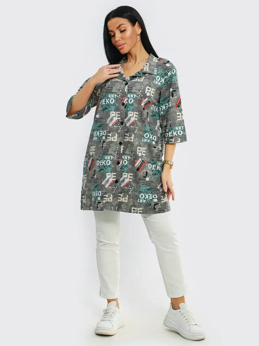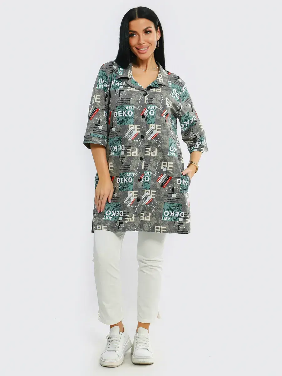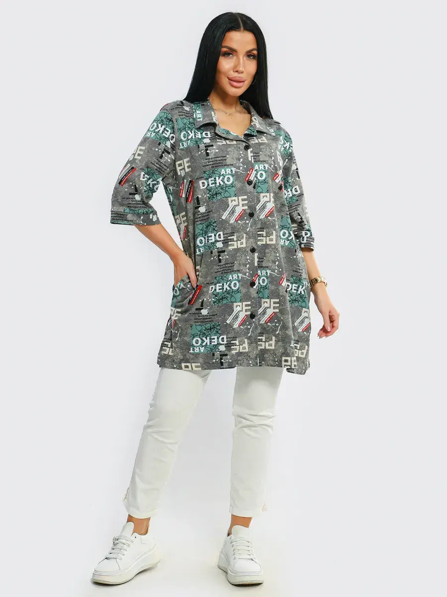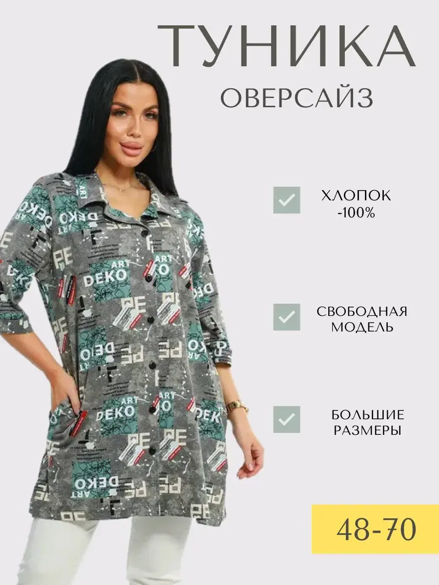 Туника удлиненная оверсайз женская больших размеров на пуговицах с классическим воротником. Размерная сетка включает в себя большие размеры, с 48-70р. Туника женская выполнена из 100 % хлопка от производителя незаменимая стильная вещь для каждого гардероба, Туника женская с принтом подойдет на любой тип фигуры. Туника предназначена для повседневной носки дома, на работу, на дачу или прогулку. Желаем Вам удачных покупок!