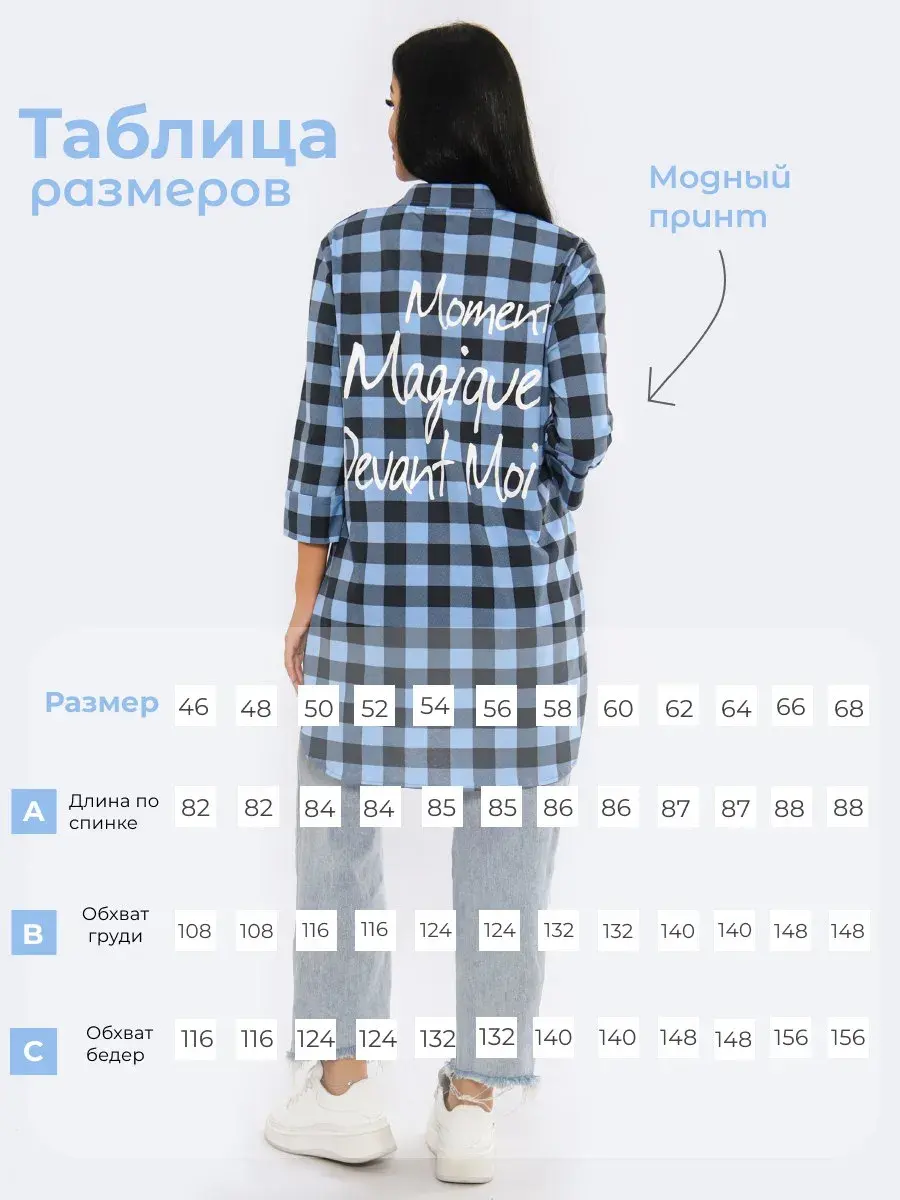 Теперь Вы можете приобрести любимые туники в новых модных расцветках. Женская туника в клетку из натурального хлопка, рукав 3/4, актуальный принт на спине. Туника подойдет на любую фигуру и скроет все недостатки. Туника имеет широкий размерный ряд от 46 до 68 размера. Желаем Вам удачных покупок!
