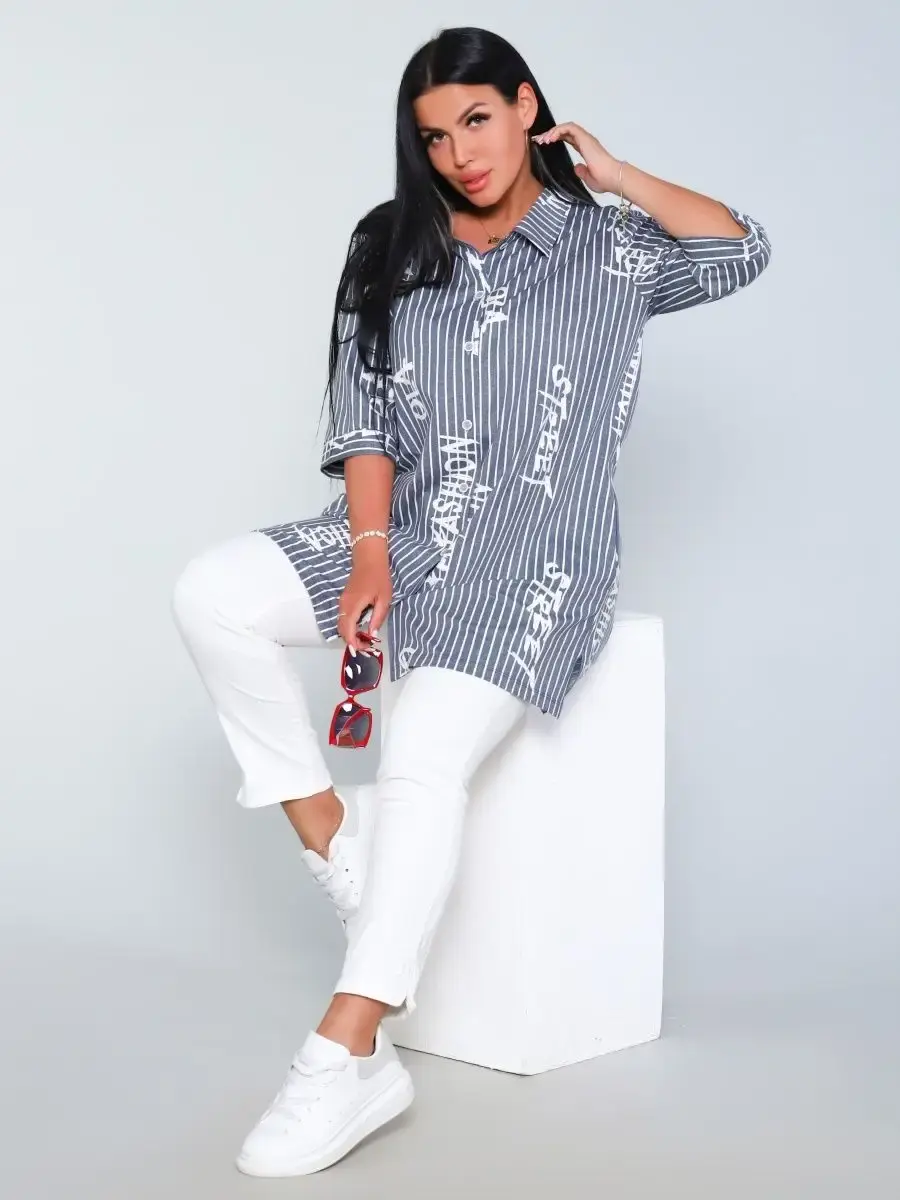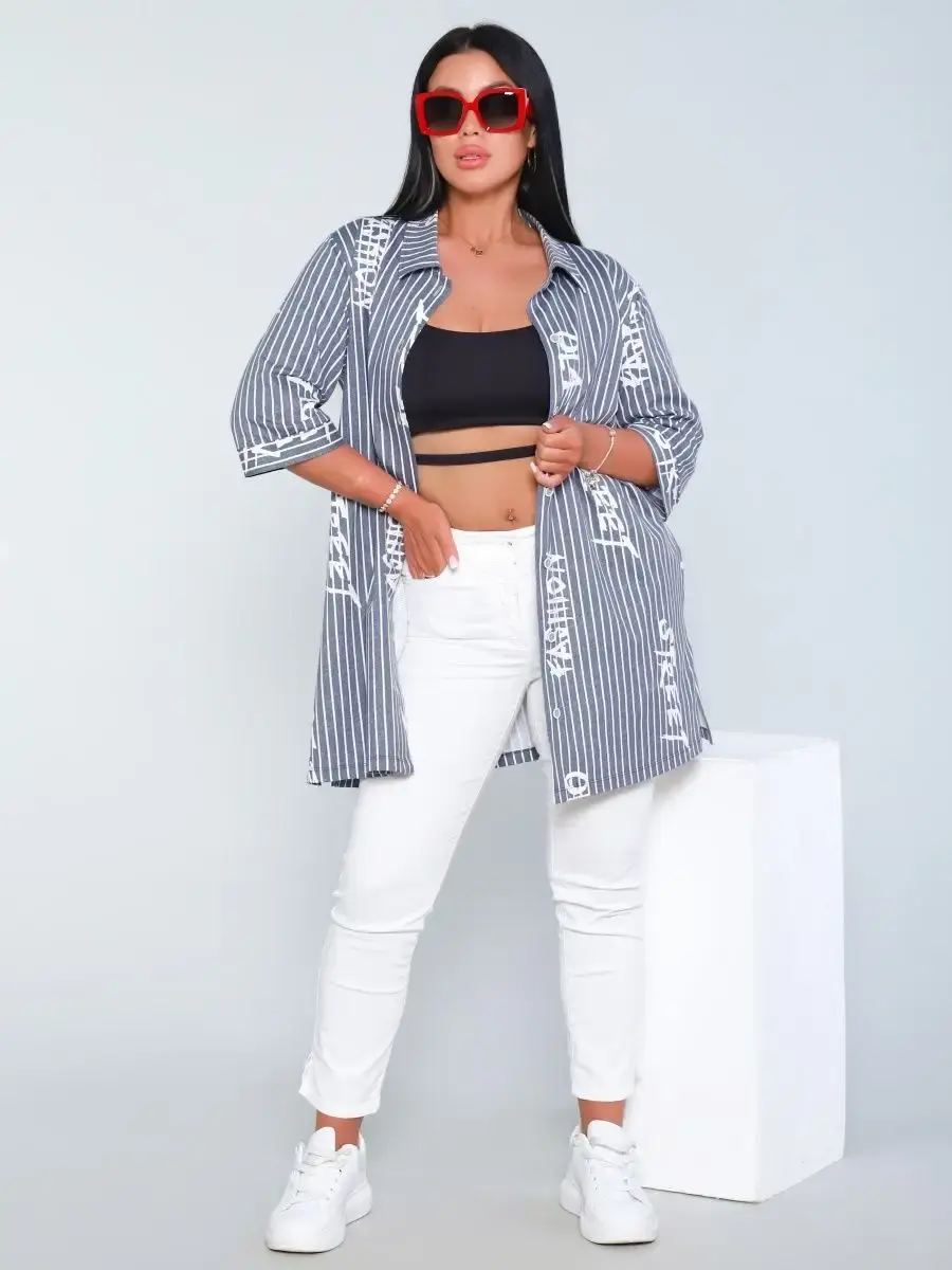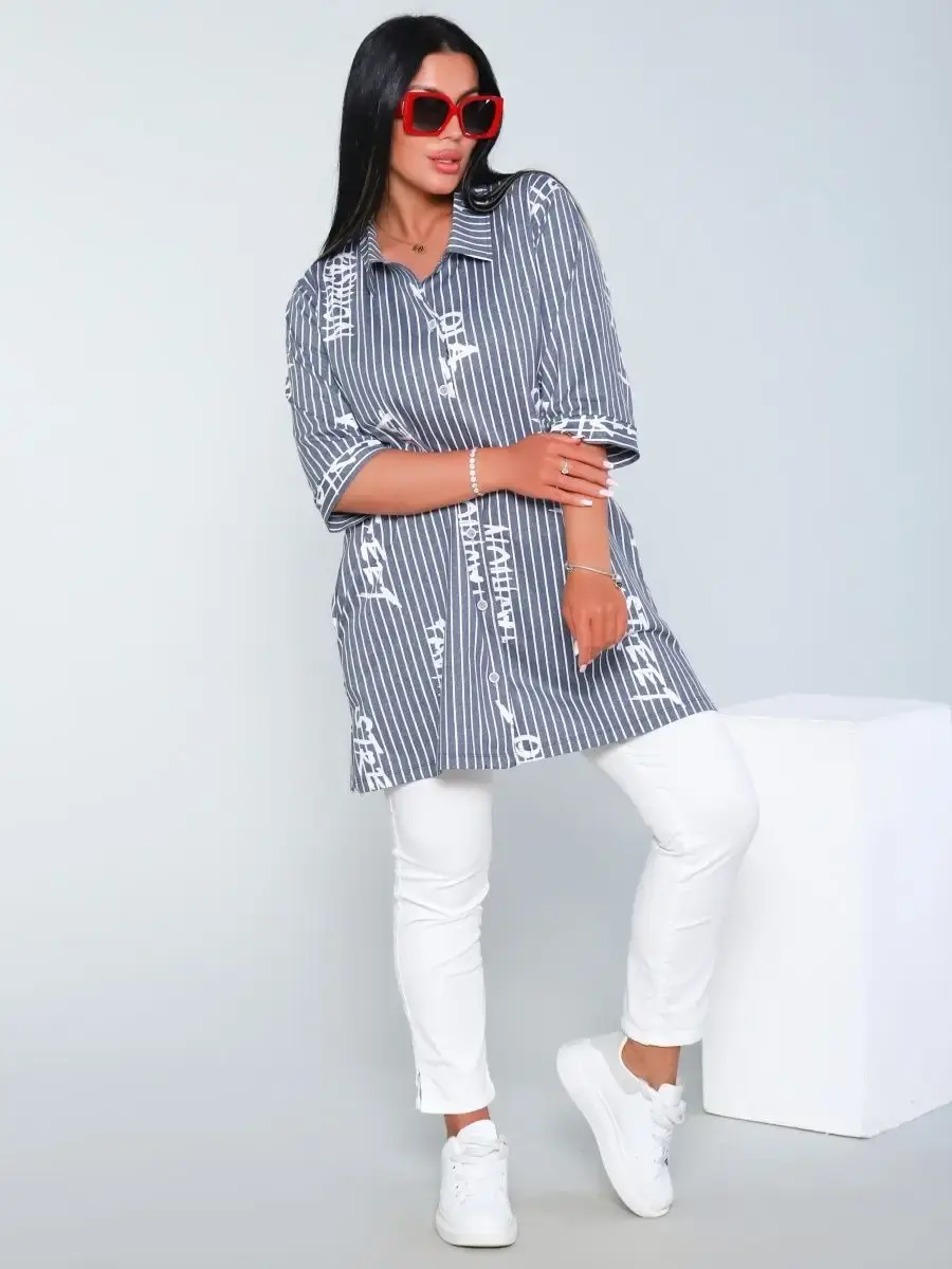 Туника удлиненная оверсайз женская больших размеров на пуговицах с классическим воротником. Размерная сетка включает в себя большие размеры, с 48-70р. Туника женская выполнена из 100 % хлопка от производителя незаменимая стильная вещь для каждого гардероба, Туника женская с принтом подойдет на любой тип фигуры. Туника предназначена для повседневной носки дома, на работу, на дачу или прогулку. Желаем Вам удачных покупок!