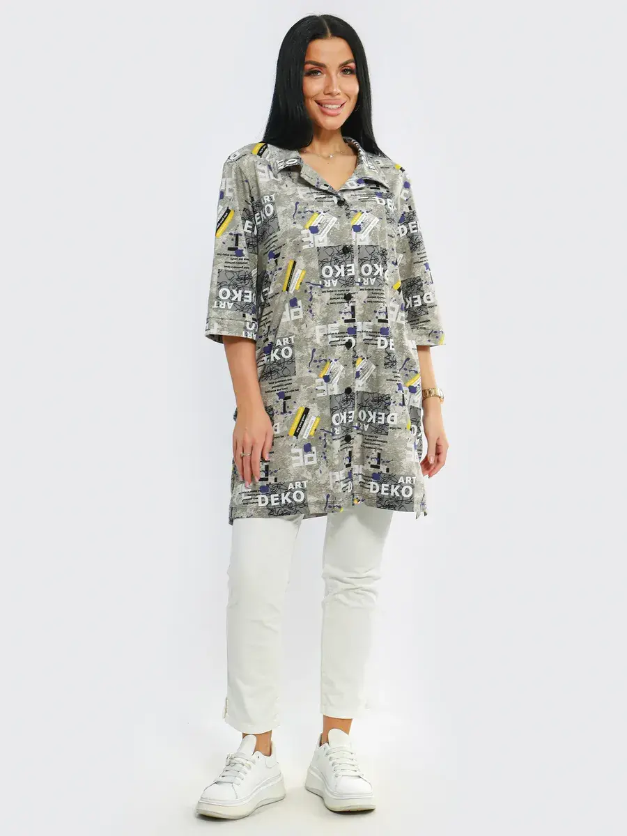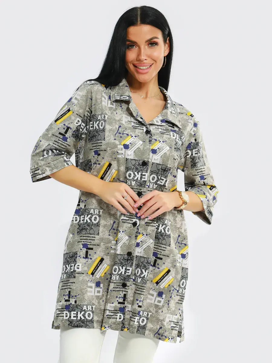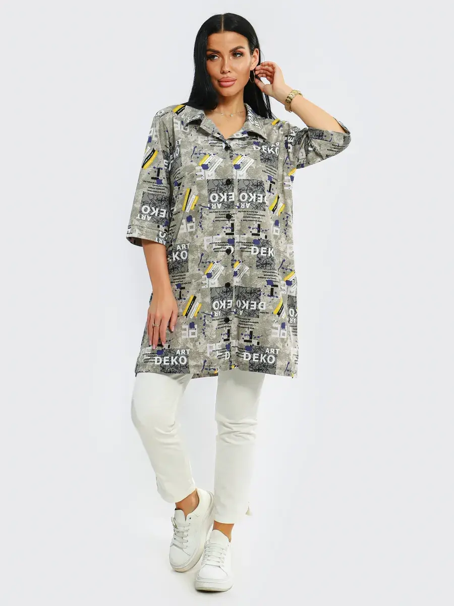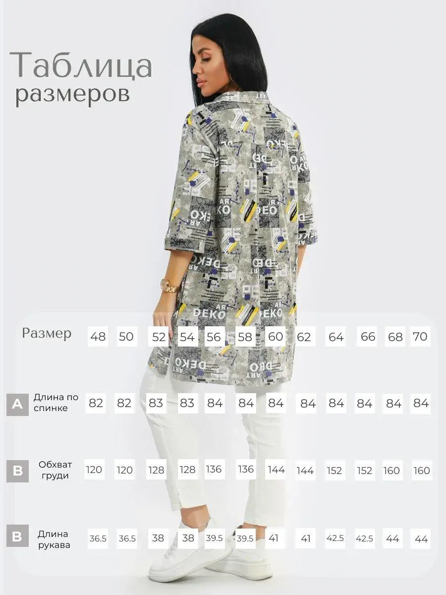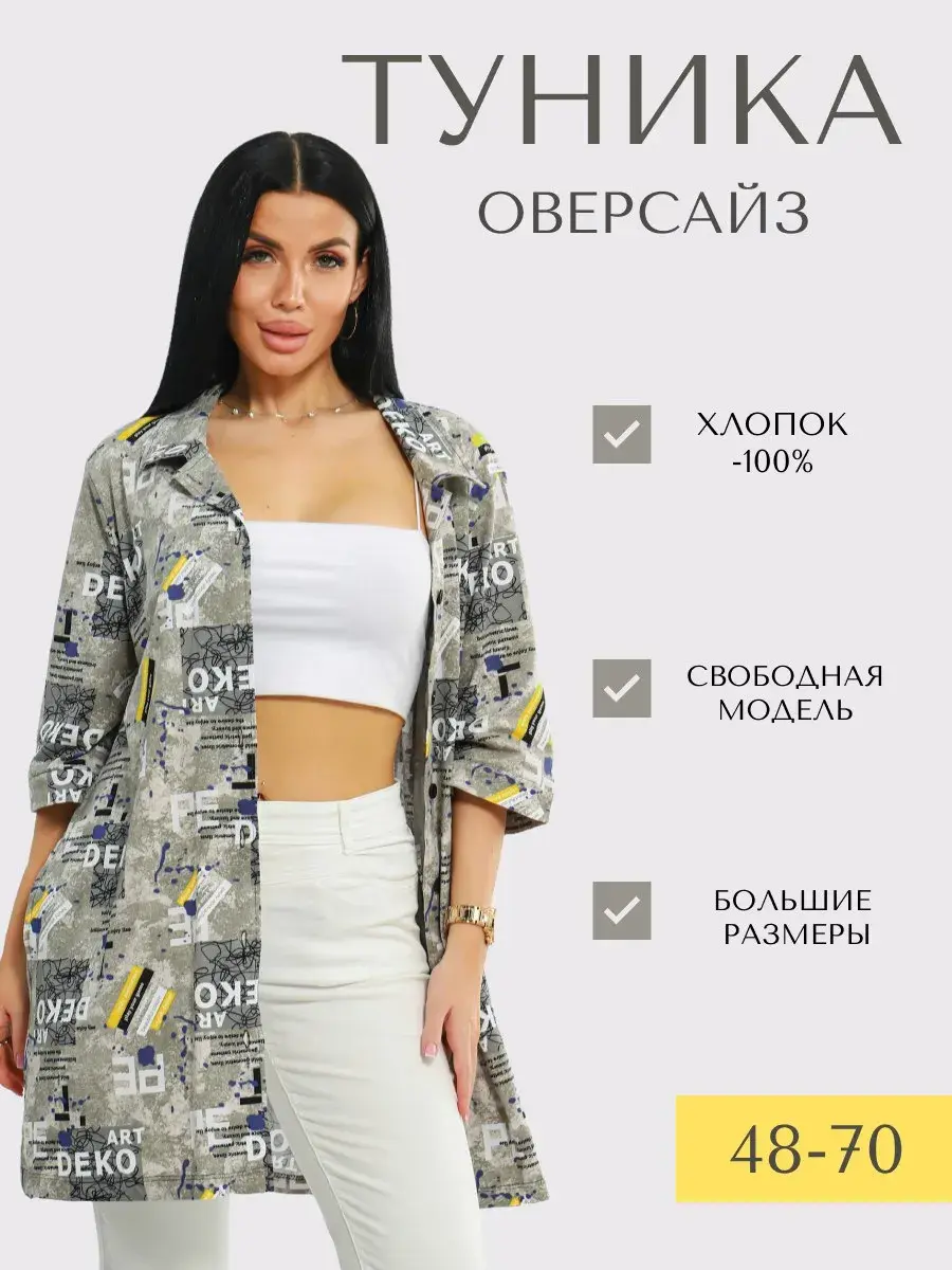 Туника удлиненная оверсайз женская больших размеров на пуговицах с классическим воротником. Размерная сетка включает в себя большие размеры, с 48-70р. Туника женская выполнена из 100 % хлопка от производителя незаменимая стильная вещь для каждого гардероба, Туника женская с принтом подойдет на любой тип фигуры. Туника предназначена для повседневной носки дома, на работу, на дачу или прогулку. Желаем Вам удачных покупок!