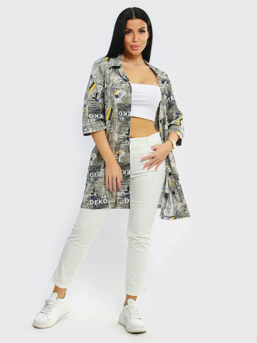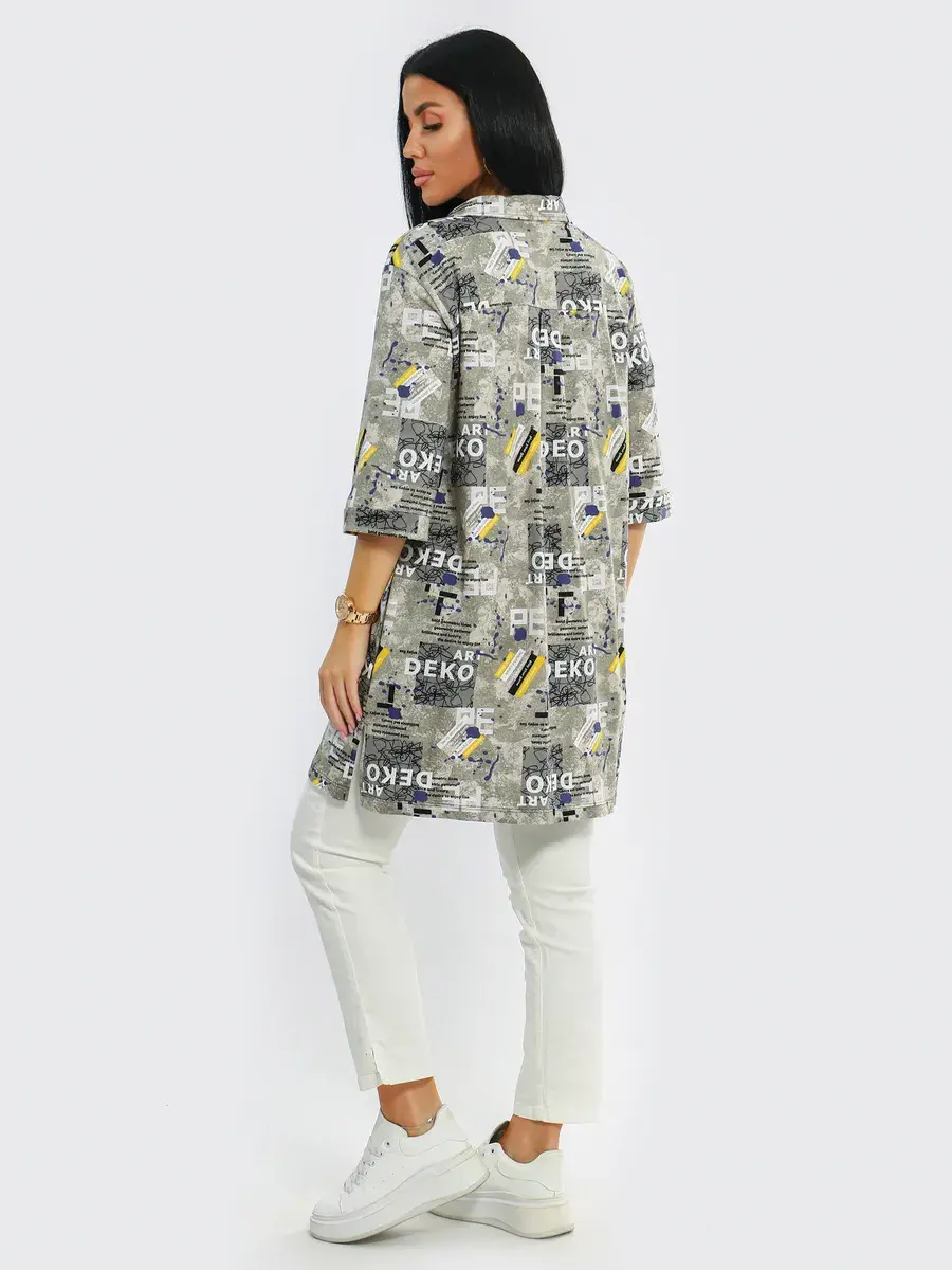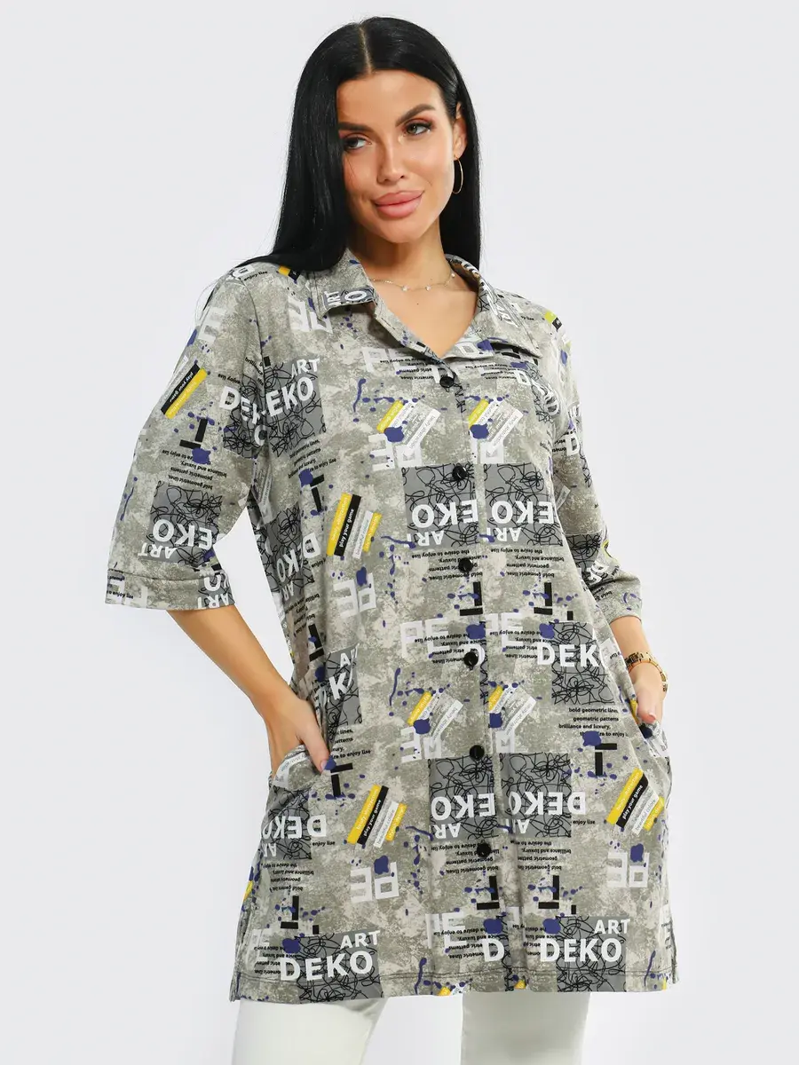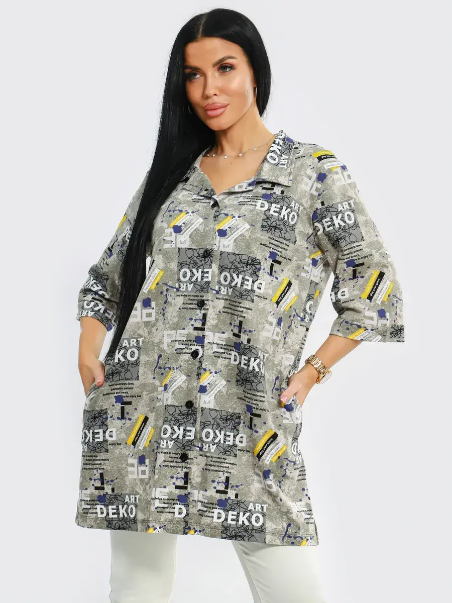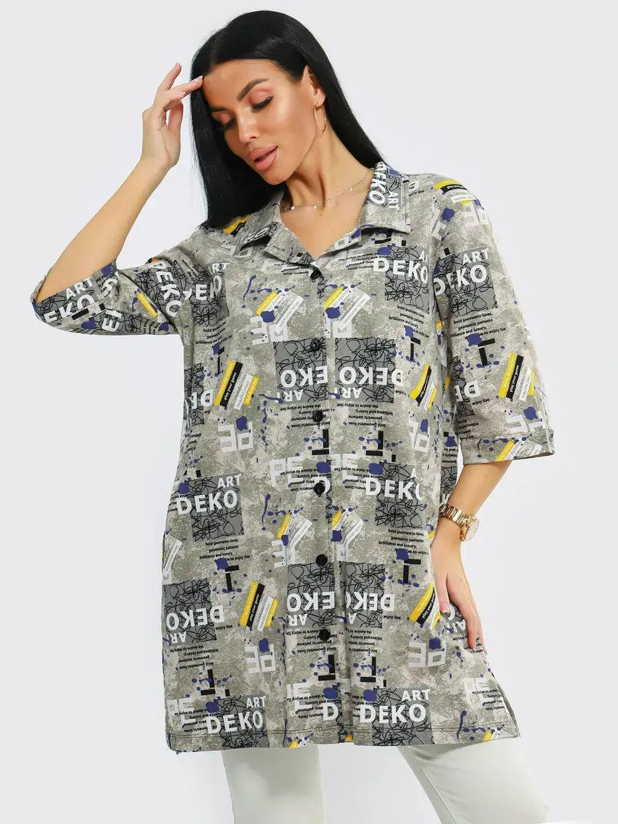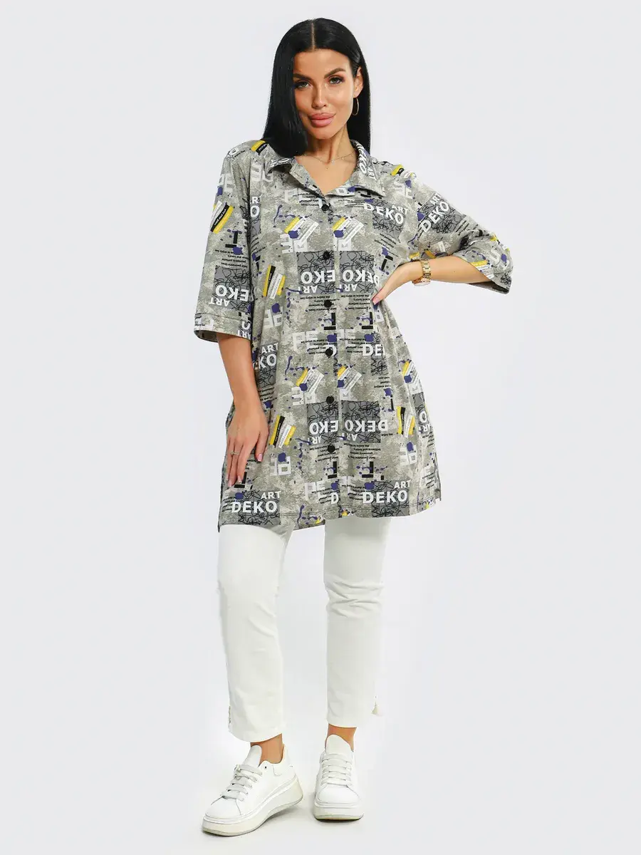Туника удлиненная оверсайз женская больших размеров на пуговицах с классическим воротником. Размерная сетка включает в себя большие размеры, с 48-70р. Туника женская выполнена из 100 % хлопка от производителя незаменимая стильная вещь для каждого гардероба, Туника женская с принтом подойдет на любой тип фигуры. Туника предназначена для повседневной носки дома, на работу, на дачу или прогулку. Желаем Вам удачных покупок!