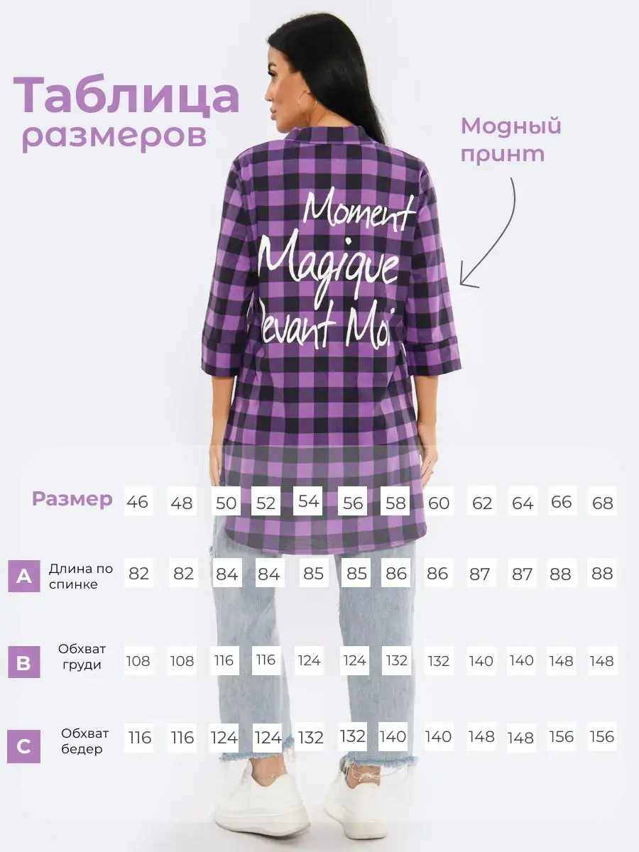 Теперь Вы можете приобрести любимые туники в новых модных расцветках. Женская туника в клетку из натурального хлопка, рукав 3/4, актуальный принт на спине. Туника подойдет на любую фигуру и скроет все недостатки. Туника имеет широкий размерный ряд от 46 до 68 размера. Желаем Вам удачных покупок!