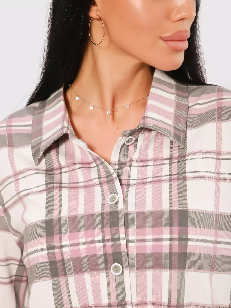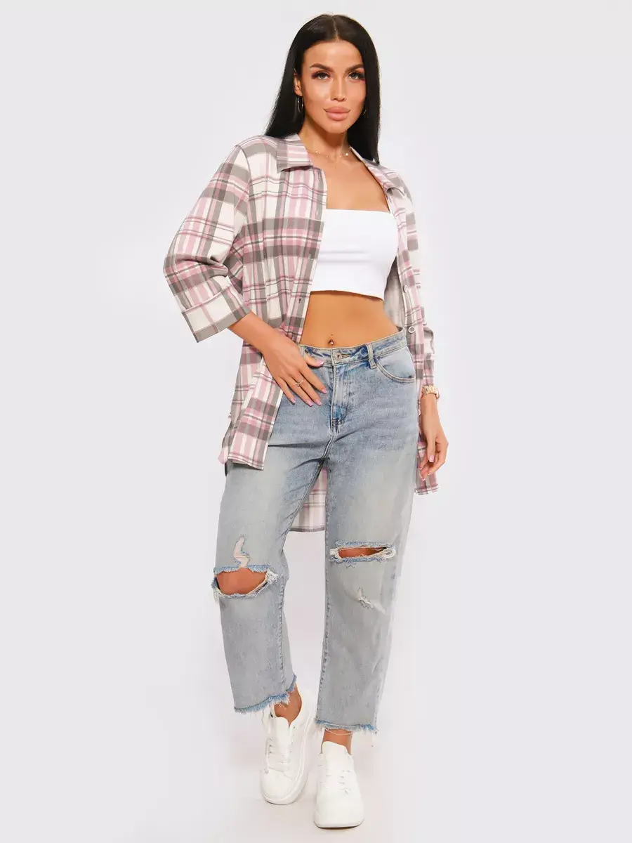 Эта женская рубашка — отличный выбор для повседневного гардероба. Выполненная из хлопка, она станет удобным и стильным элементом вашего образа. Удлиненная модель подходит для женщин, предпочитающих комфорт и свободу движений. В клетку — актуальный узор, который всегда в моде и отлично сочетает элегантность с непринужденностью.Особенность этой вещи заключается в ее универсальности. Туника может быть использована как домашняя одежда благодаря своей мягкости и уюту трикотажной ткани. Этой осенью она станет идеальным спутником на каждый день. Кроме того, свободный оверсайз крой делает ее подходящей даже для беременных женщин, обеспечивая нужное пространство и комфорт.Рубашка подойдет не только для дома, но и для выхода в офис или на работу. Сдержанный стиль позволит ей вписаться в деловую атмосферу, сохраняя при этом необходимое чувство стиля и индивидуальности. Также она может стать отличным вариантом базовой вещи для школы или случайных встреч с друзьями.Эта рубашка также может служить чудесным подарком. Разнообразие способов носки позволяет комбинировать ее с джинсами или леггинсами, подчеркивая ваш образ как нежный и романтичный, так и более официальный или городской.Выбирая эту вещь для себя или в качестве подарка близким людям, вы приобретаете не просто одежду больших размеров - это поистине универсальная находка 2024 года! Ее удобно носить каждый день благодаря качеству материала из хлопка, которое не вызывает раздражения кожи.Наслаждайтесь свободой движения и создавайте свой индивидуальный стиль вместе с этой удлиненной туникой. Она идеально гармонирует с многоликим образом жизни современных женщин: от работы до дома без необходимости переодевания.Так же приятно знать что эта вещь способствует вашему повседневному комфорту вне зависимости от сезона — даже ранней осенью она будет сохранять тепло.Не упустите возможность пополнить свой гардероб стилем простоты с ноткой классики!