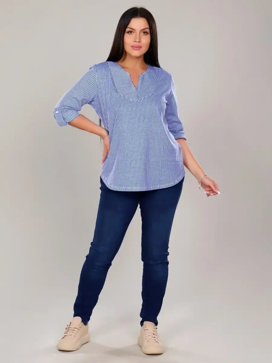 Стильная трикотажная женская туника рукавами 3/4 отлично сочетается и с юбками, и с брюками. Благодаря натуральному и качественному составу идеально подходит для любой погоды. Туника изготовлена из высококачественной ткани, что делает ее мягкой и приятной к телу. В ней вы будете выглядеть элегантно и стильно: на работе, на встрече и отдыхе, а также в любом другом месте. Данная модель идеально впишется в любой гардероб. Туника женская сочетает в себе удобство, комфорт и качество и не требует особого ухода. Изделия бренда универсальны: подходят для модниц с пышными формами, для беременных и кормящих женщин. Подарите себе и своим близким радость от правильной покупки. Длина по спинке меняется в зависимости от размера.