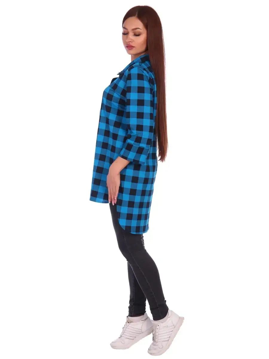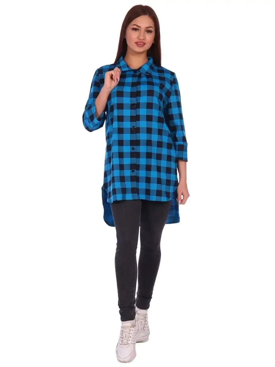 Женская рубашка в клетку из натурального хлопка. Доступен выбор из нескольких цветов. В наличии большие размеры.