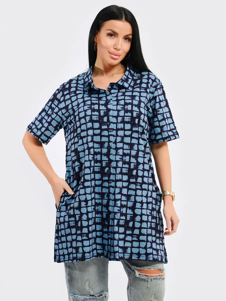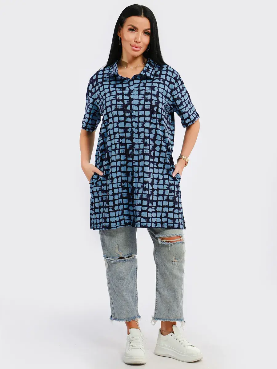 Туника удлиненная оверсайз женская больших размеров на пуговицах с классическим воротником и боковыми карманами. Широкая размерная сетка включает в себя большие размеры, с 48-70р. Туника женская выполнена из 100 % турецкого хлопка, незаменимая стильная вещь для Вашего гардероба.Туника женская с принтом подойдет на любой тип фигуры, её можно сочетать с любым низом. Туника предназначена для повседневной носки дома, на работу, на дачу или прогулку. Желаем Вам удачных покупок!