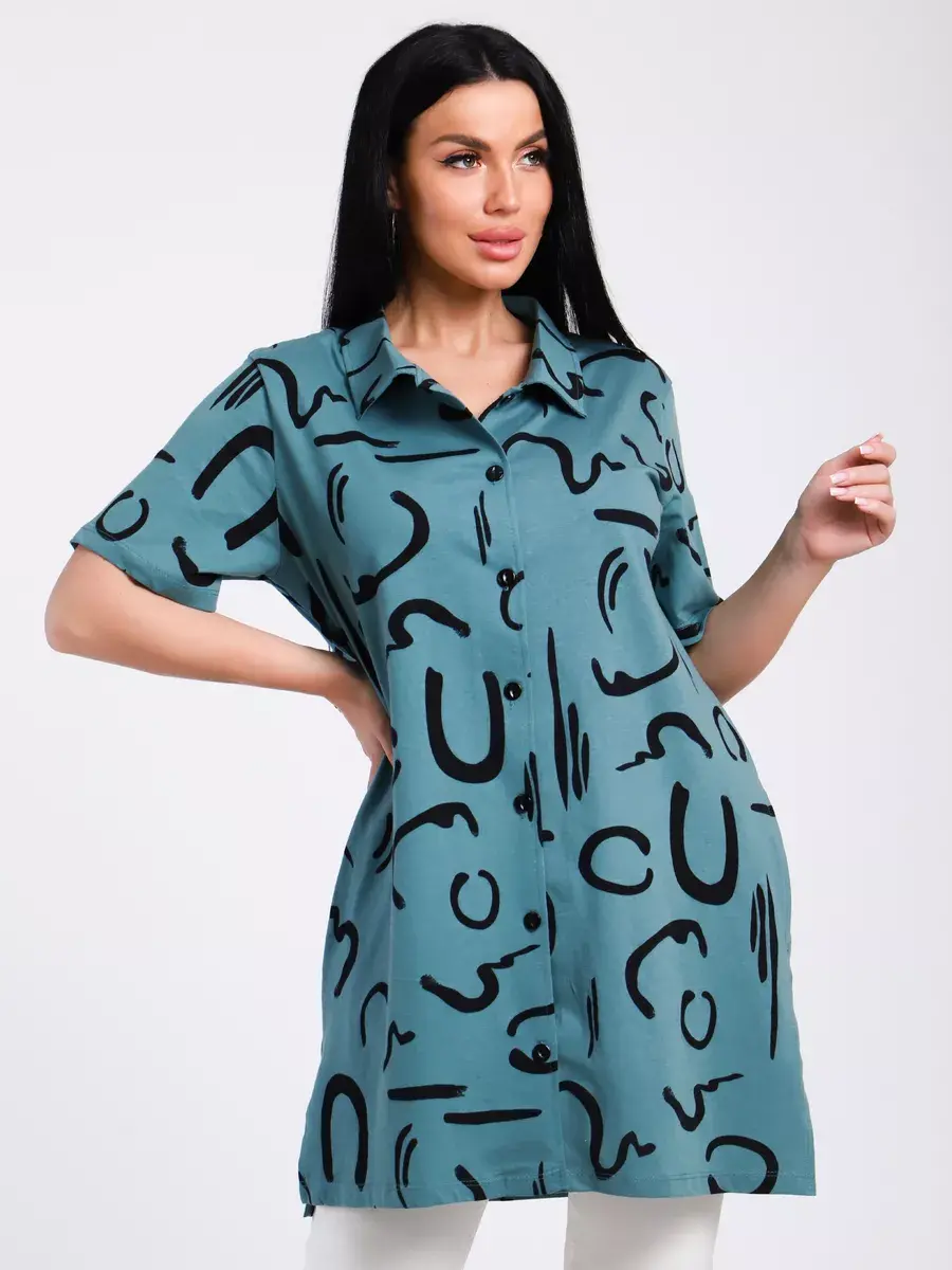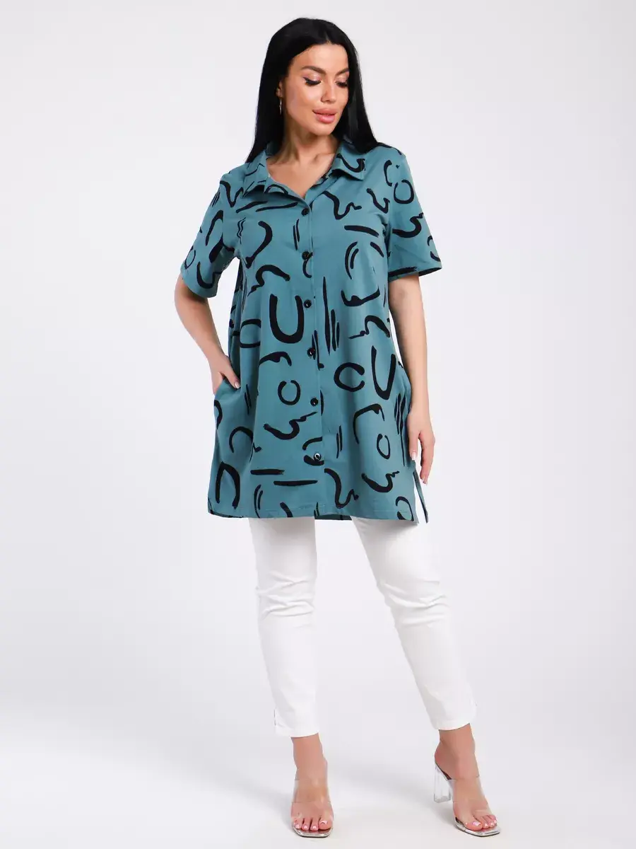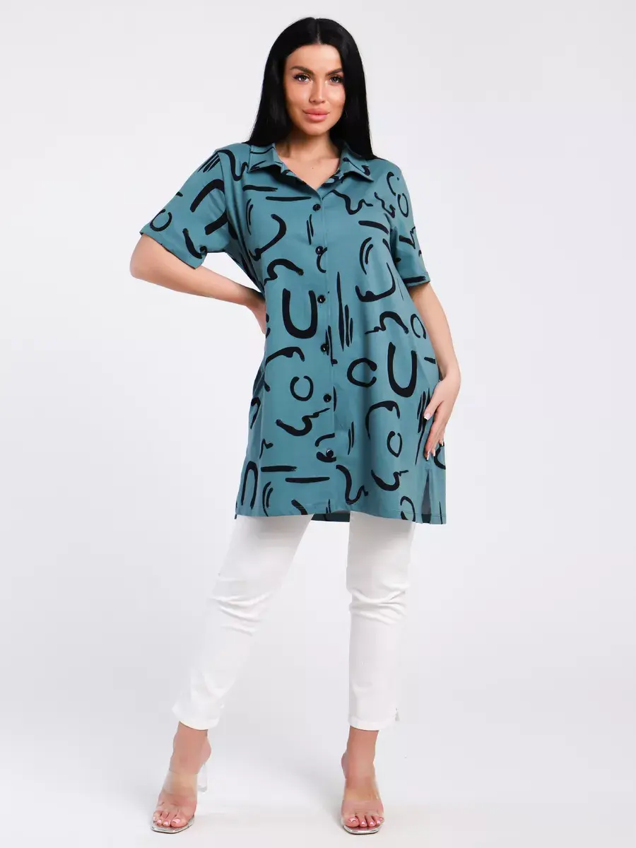 Туника удлиненная оверсайз женская больших размеров на пуговицах с классическим воротником и боковыми карманами. Широкая размерная сетка включает в себя большие размеры, с 48-70р. Туника женская выполнена из 100 % турецкого хлопка, незаменимая стильная вещь для Вашего гардероба.Туника женская с принтом подойдет на любой тип фигуры, её можно сочетать с любым низом. Туника предназначена для повседневной носки дома, на работу, на дачу или прогулку. Желаем Вам удачных покупок!