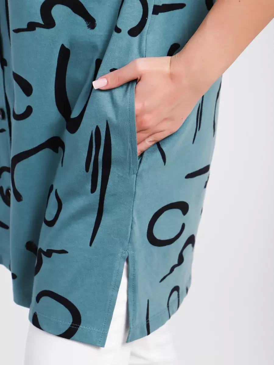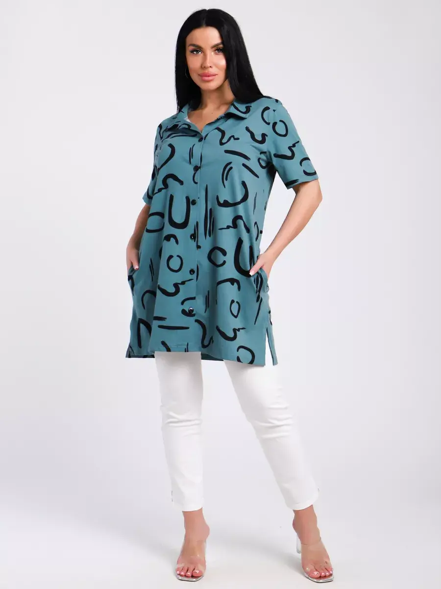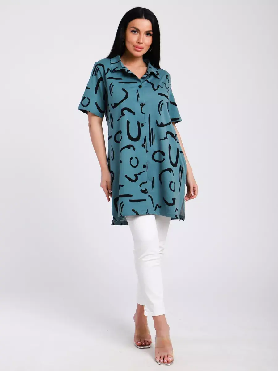 Туника удлиненная оверсайз женская больших размеров на пуговицах с классическим воротником и боковыми карманами. Широкая размерная сетка включает в себя большие размеры, с 48-70р. Туника женская выполнена из 100 % турецкого хлопка, незаменимая стильная вещь для Вашего гардероба.Туника женская с принтом подойдет на любой тип фигуры, её можно сочетать с любым низом. Туника предназначена для повседневной носки дома, на работу, на дачу или прогулку. Желаем Вам удачных покупок!