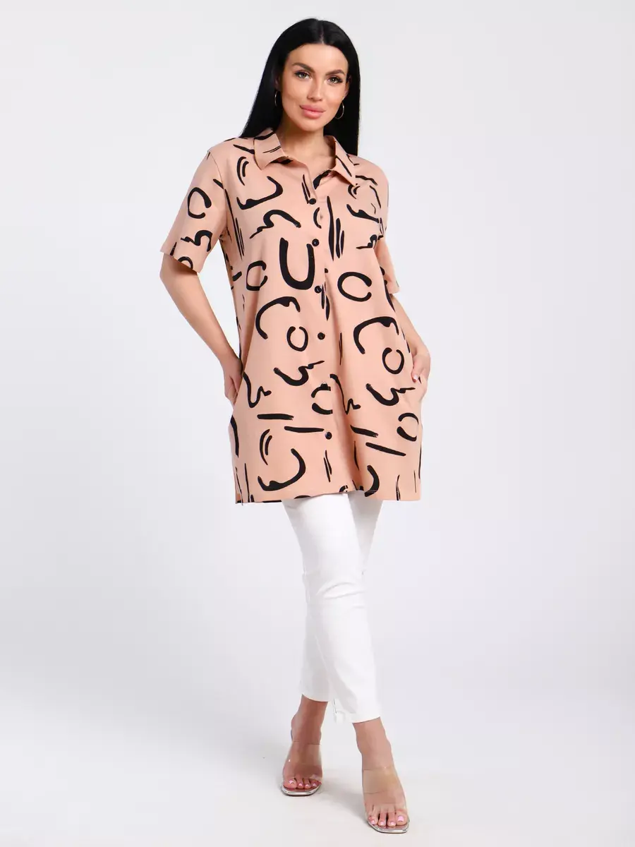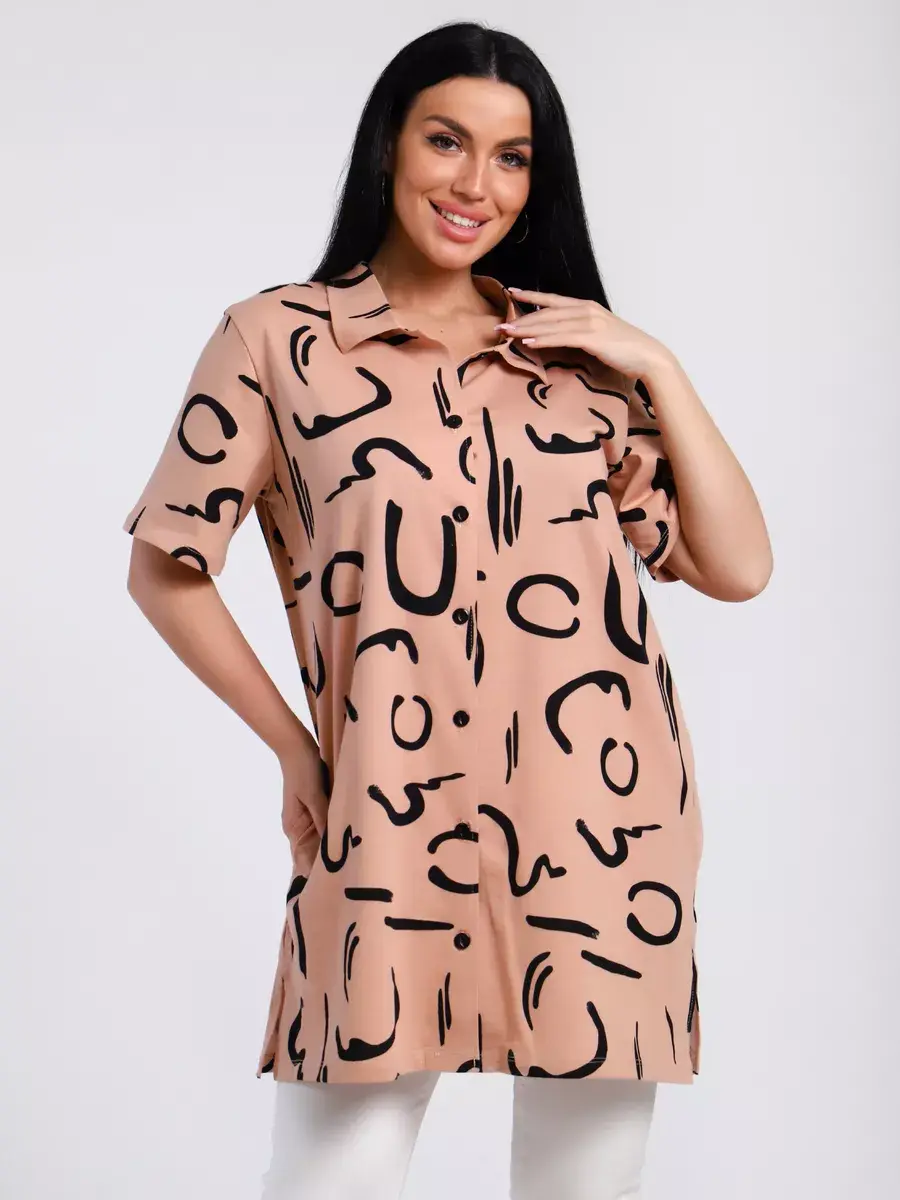 Туника удлиненная оверсайз женская больших размеров на пуговицах с классическим воротником и боковыми карманами. Широкая размерная сетка включает в себя большие размеры, с 48-70р. Туника женская выполнена из 100 % турецкого хлопка, незаменимая стильная вещь для Вашего гардероба.Туника женская с принтом подойдет на любой тип фигуры, её можно сочетать с любым низом. Туника предназначена для повседневной носки дома, на работу, на дачу или прогулку. Желаем Вам удачных покупок!