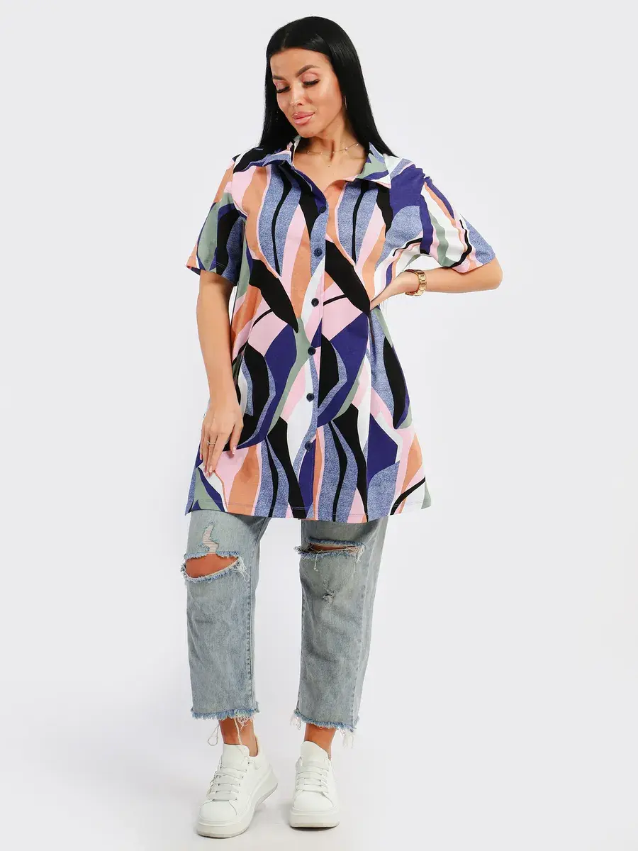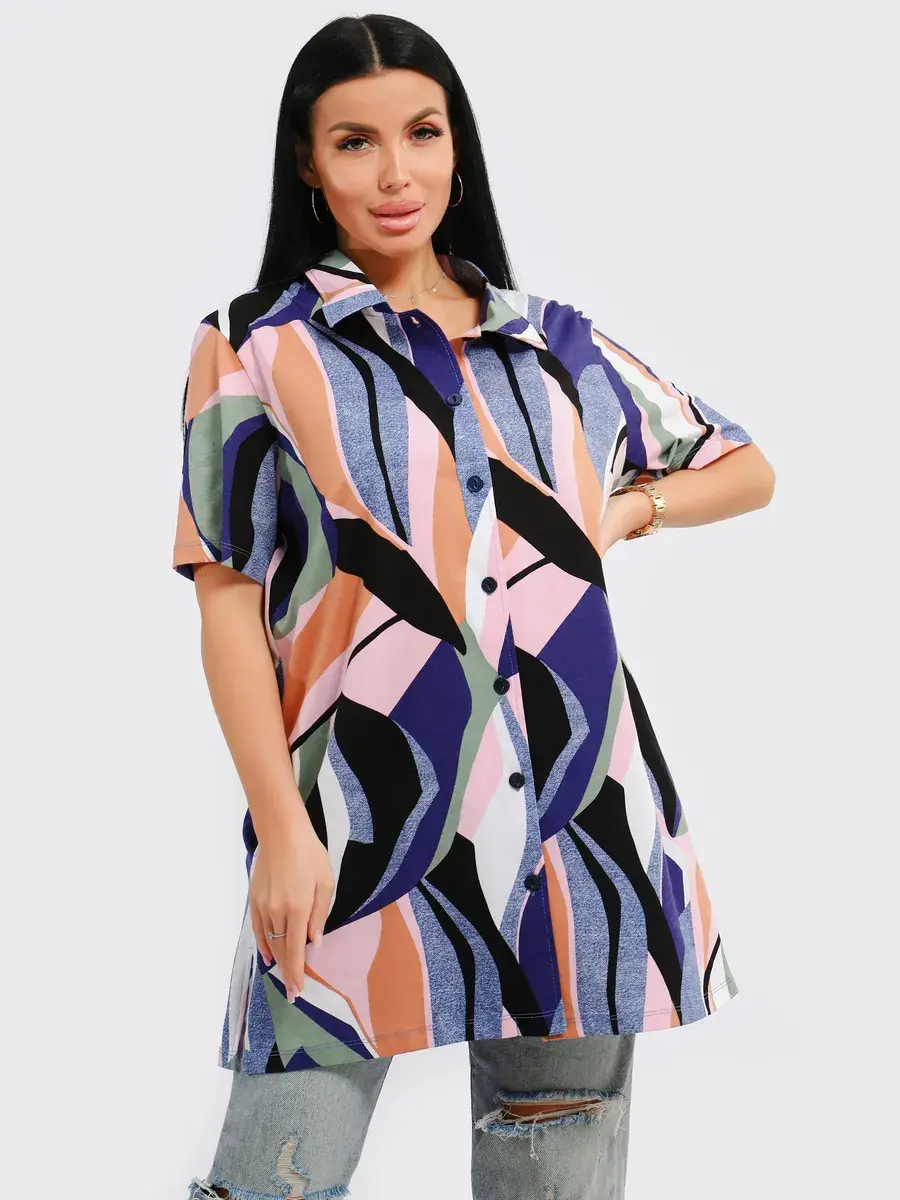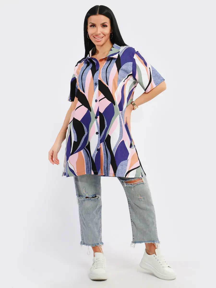 Туника удлиненная оверсайз женская больших размеров на пуговицах с классическим воротником и боковыми карманами. Широкая размерная сетка включает в себя большие размеры, с 48-70р. Туника женская выполнена из 100 % турецкого хлопка, незаменимая стильная вещь для Вашего гардероба.Туника женская с принтом подойдет на любой тип фигуры, её можно сочетать с любым низом. Туника предназначена для повседневной носки дома, на работу, на дачу или прогулку. Желаем Вам удачных покупок!